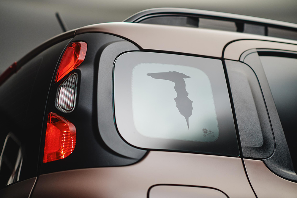 También incorpora unas llantas de aleación de 15 pulgadas terminadas en negro brillante, unas molduras que llevan vinilado el nombre de Trussardi y el logo de la compañía también puesto en la tercera ventanilla lateral, la del pilar C.