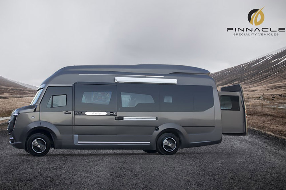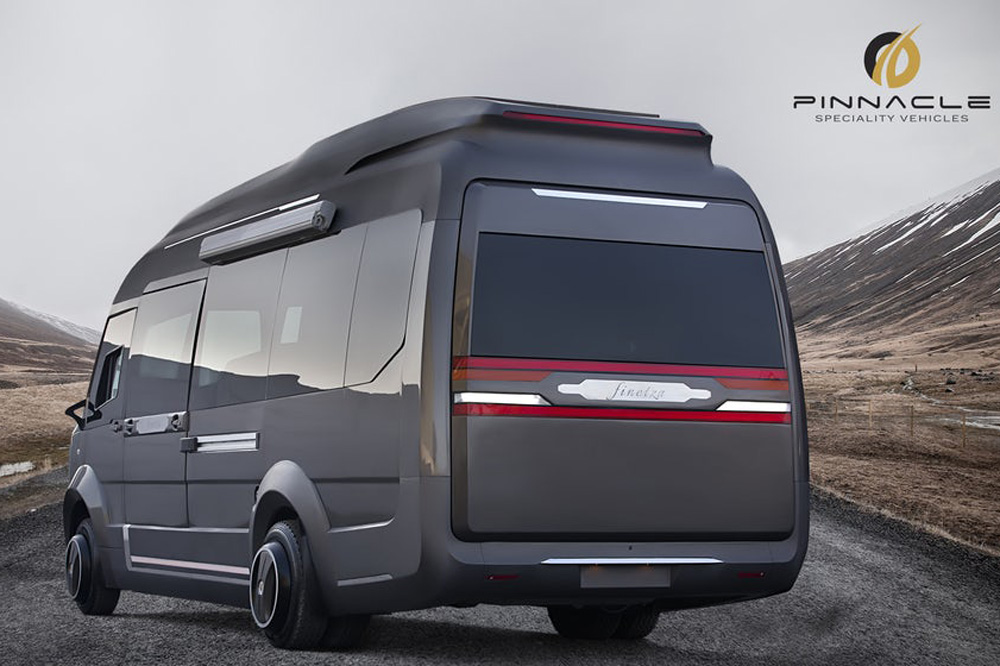 Es obra de la firma Pinnacle Specialty Vehicles, que con la motorhome Finetza, ha creado según dicen la primera autocaravana modular de lujo fabricada en la India. Con su imagen exterior, de rasgos agresivos y no muy agraciados (aunque dependa de los gustos de cada uno), oculta un habitáculo con soluciones sorprendentes ya que, por ejemplo, es capaz de expandirse aumentando su longitud para incrementar la habitabilidad cuando queremos pernoctar a bordo.