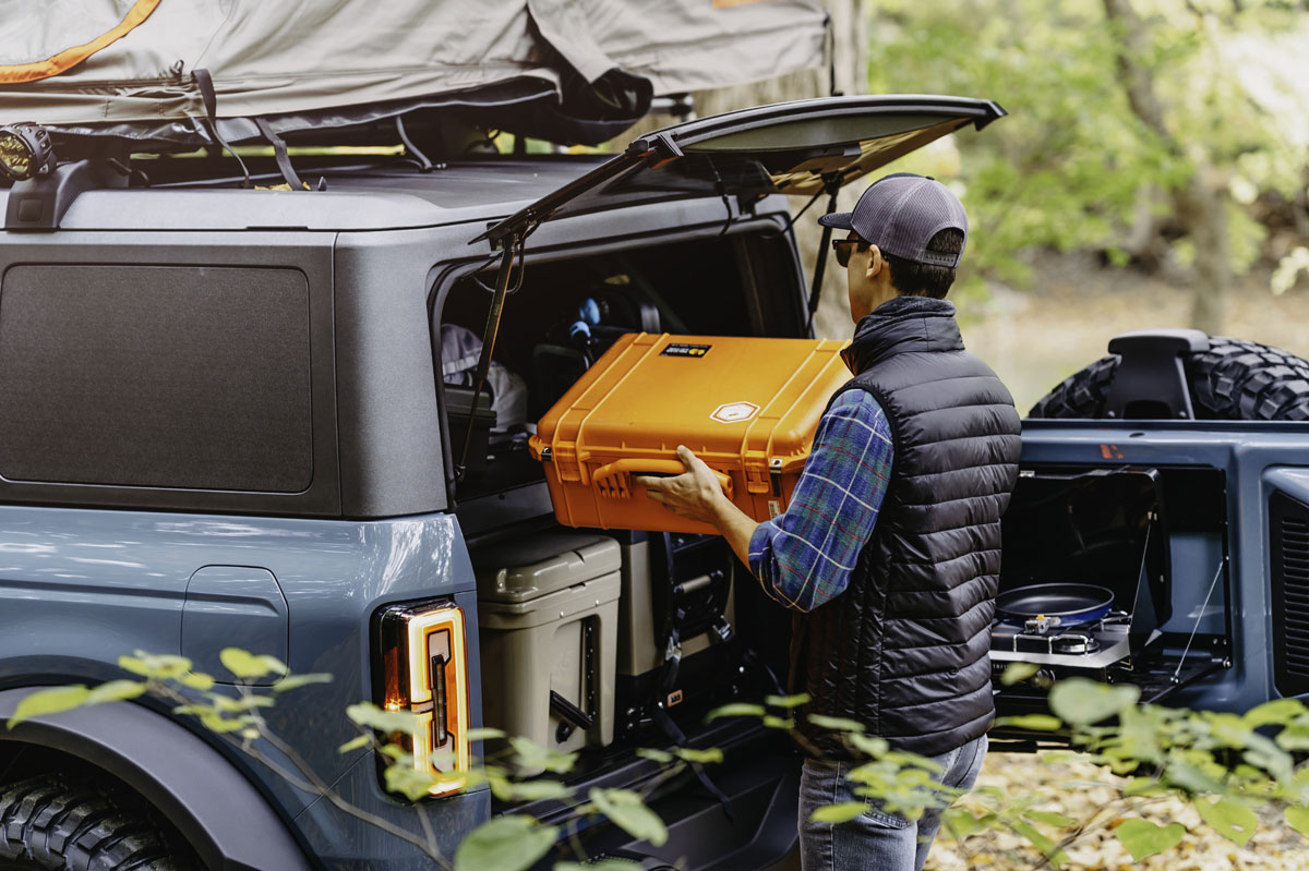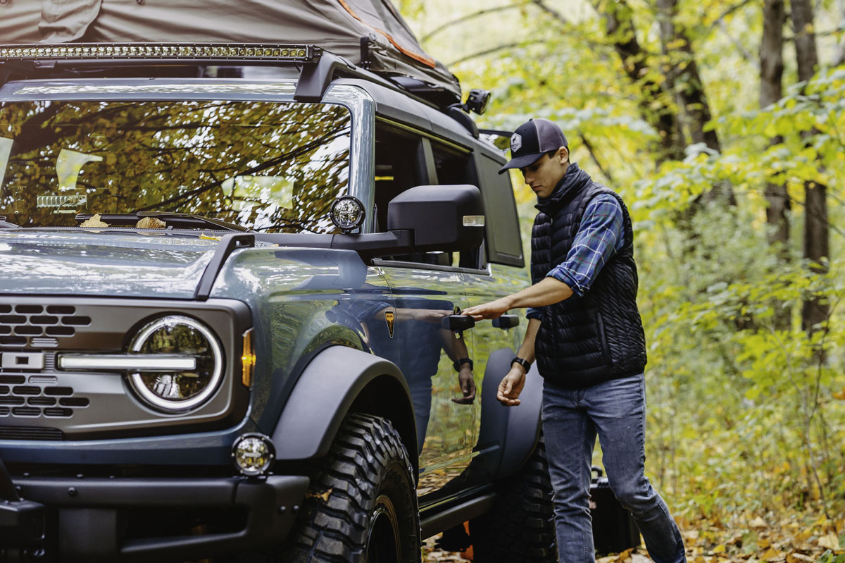 El Bronco Overland Concept está construido sobre la base del Bronco Badlands con color “Área 51”. Como puedes apreciar en las fotografías, está equipado con infinidad de accesorios con los que se transforma en un increíble 4x4 camperizado. Un Ford al que no le falta ningún detalle para vivir aventuras fuera del asfalto con todas las comodidades.
