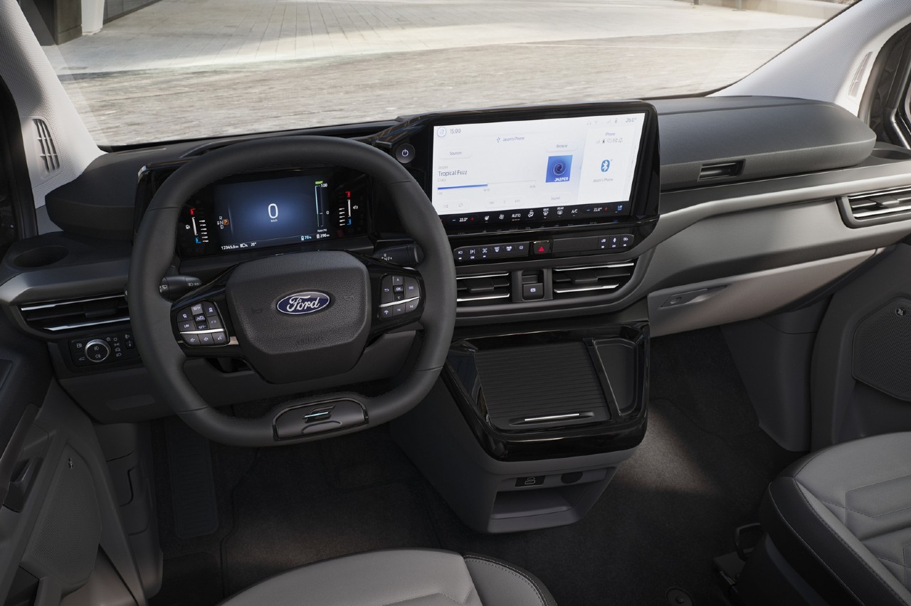 El interior es el propio de un turismo, cuenta con un cuadro de instrumentos digital adosado a una pantalla central de 13 pulgadas, dispone del sistema de infoentretenimiento SYNC 4, superficie de carga inalámbrica para smartphones y opcionales como techo panorámico, módem 5G o sistema de sonido Bang & Olufsen con 14 altavoces.