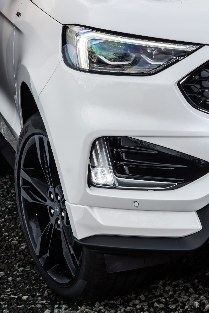 Como podrás apreciar en la galería de imágenes al final de estas líneas, el Ford Edge recorta distancias con sus hermanos de marca, el Ford Kuga y el Ford EcoSport en cuanto a imagen se refiere. El frontal ha sido completamente renovado, con faros, parrilla y capó rediseñados, mientras que el portón del maletero sigue estas mismas líneas. Como te decía, los compradores podrán optar por el Edge ST-Line, con detalles en negro brillante en la carrocería, llantas de 20 pulgadas y un interior con pedales de aluminio y cuero perforado.