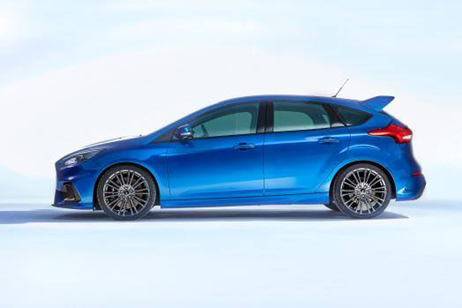 En la vista lateral, el nuevo Ford Focus RS incorpora faldones laterales esculpidos y llantas de aleación multiradio RS de 19 pulgadas acabadas en negro brillo, con un peso ligero y resistentes a impactos. La zaga por su parte, posee una imagen radical enmarcada por el enorme spoiler trasero. El difusor inferior, por su parte, se encarga de albergar las dos salidas de escape y de optimizar el paso del aire por debajo del vehículo para reducir el arrastre aerodinámico. El toque llamativo en el exterior lo otorgan los cuatro colores disponibles para el Focus RS 2016, como son el Nitrous Blue, Stealth Grey, Shadow Black y Blanco Crystal.
