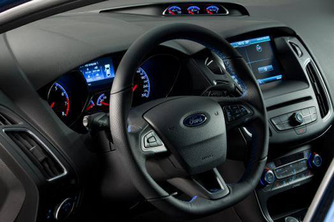 El interior del Ford Focus RS 2016 mantiene el espíritu deportivo que impera en el exterior. Los asientos deportivos firmados por Recaro proporcionan una gran sujeción y, opcionalmente, pueden estar terminados en tejido microfibra deportivo auténtico y con el logo RS. La distribución de los controles del Ford Focus RS dan cabida al sistema de conectividad SYNC, el cual está comandado por una pantalla táctil a color de 8 pulgadas que permite el control del audio, la navegación, la climatización y la conexión al móvil con comandos de voz. Como ya incluía el anterior Focus RS, los indicadores posicionados sobre el salpicadero muestran la presión del turbo, la temperatura y la presión del aceite, así como acompañara a un volante de piel de nuevo diseño.