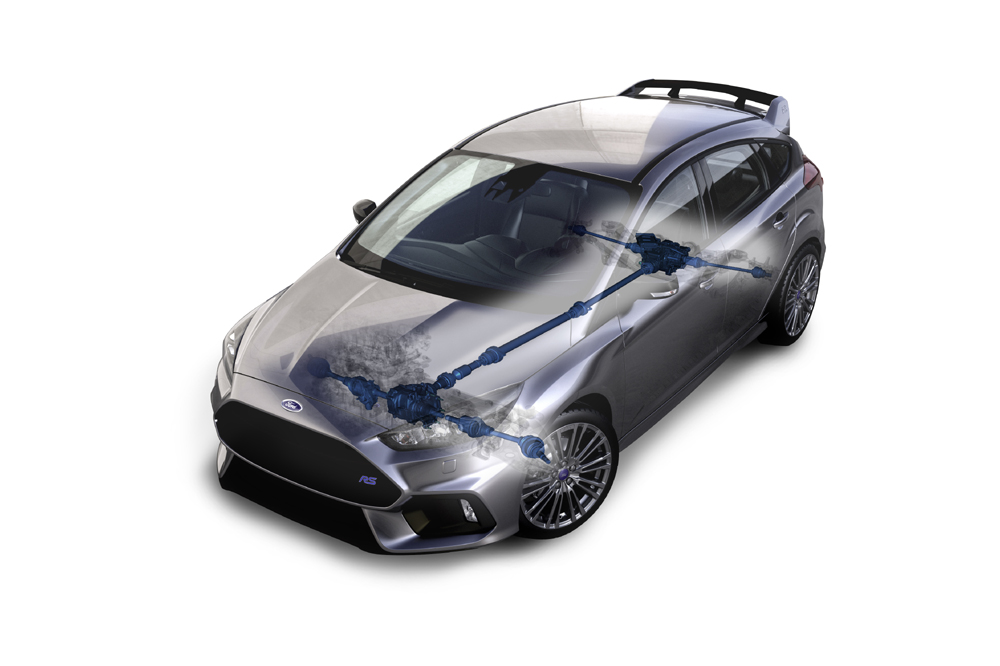Una de los aspectos que todos los amantes de las altas prestaciones estábamos esperando conocer era si el Ford Focus RS 2016 equiparía un sistema de tracción integral o se mantendría con la tracción delantera. Parece ser que Ford Performance piensa igual que nosotros y ha desarrollado un innovador sistema de tracción total con All-Wheel-Drive con Dynamic Torque Vectoring, es decir, reparto vectorial del par. Este sistema trabaja con dos packs de embragues controlados electrónicamente, los cuales gestionan el reparto de par delante/detrás y también pueden controlar la distribución de lado a lado en el eje trasero, lo cual se traduce en una mejora del comportamiento y la estabilidad en curva.