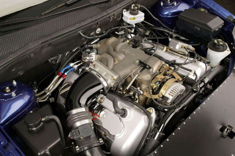 A nadie sorprenderá la primera medida tomada: reemplazar su motor, un 2.0 turbo tetracilíndrico de 215 CV de potencia que parece que les quedaba corto, por un bloque considerablemente más potente. El elegido fue un 5.0 V8 ‘Cammer’, que desarrollaba nada menos que 420 CV y 500 Nm de par máximo. El propulsor tenía ciertos elementos en común con el 5.4 V8 que empleaba el Mustang SVT Cobra de la época, como el cigüeñal reforzado, así como piezas específicas para aguantar su mayor rendimiento.