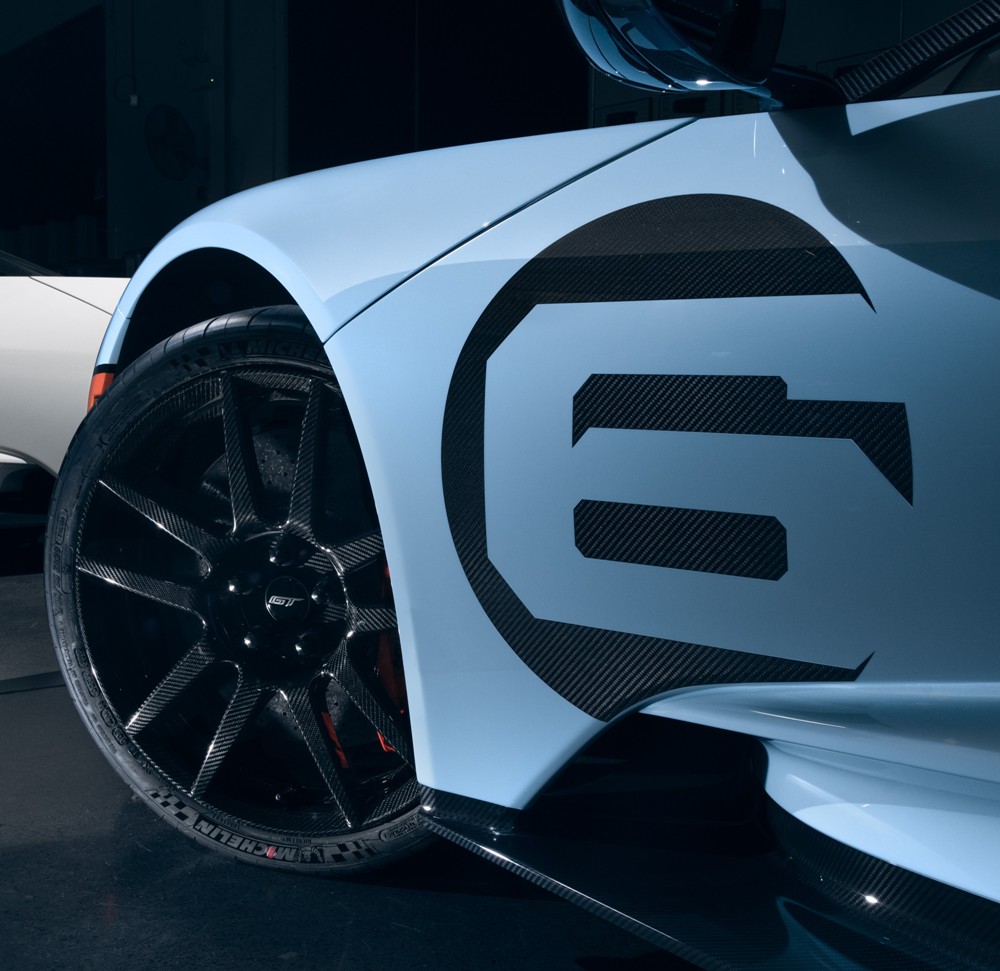 Por último, Ford Performance ha actualizado la icónica decoración Gulf Racing Heritage con un nuevo diseño que incluye una franja negra divisoria entre los colores azul y naranja, lo que rinde tributo al GT ganador de Le Mans de 1968 y 1969. El número opcional de fibra de carbono cambia del 9 al 6 en 2020, coincidiendo con el que mostró el coche ganador en esos años. Por primera vez en un modelo con decoración Heritage, las llantas de fibra de carbono están disponibles en lugar de las de aleación de aluminio estándar.
