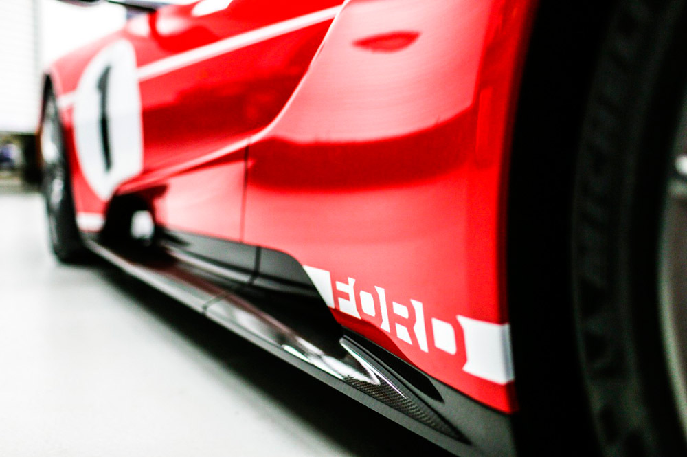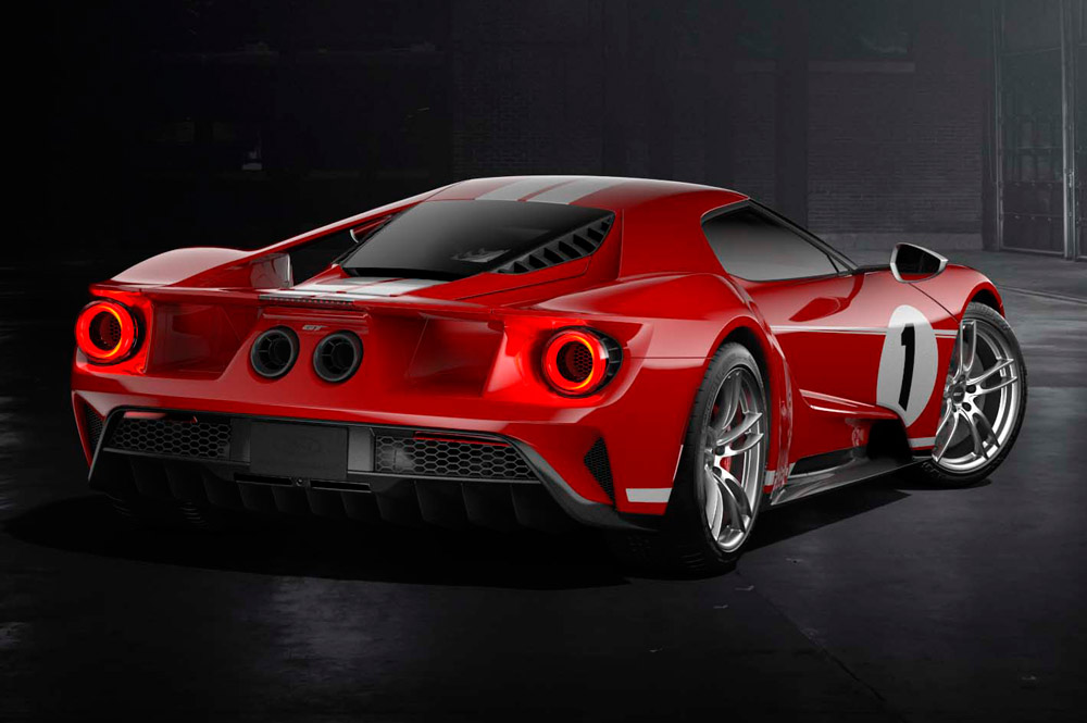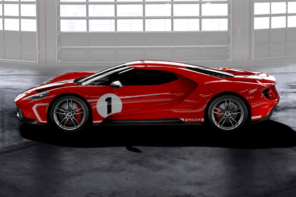 Como el campeón de hace cinco décadas, esta edición limitada del Ford GT presenta una carrocería en color rojo brillante denominado Race Red con dos rayas en color blanco que atraviesan longitudinalmente el vehículo, además del número 1 en el capó y los laterales. Se une el pack carbono, las llantas de aluminio forjardo de 20 pulgadas en plata satinado con la tornillería y el cubre buje en negro. Completan el look las pinzas de freno en rojo y las carcasas de los retrovisores exteriores en gris.