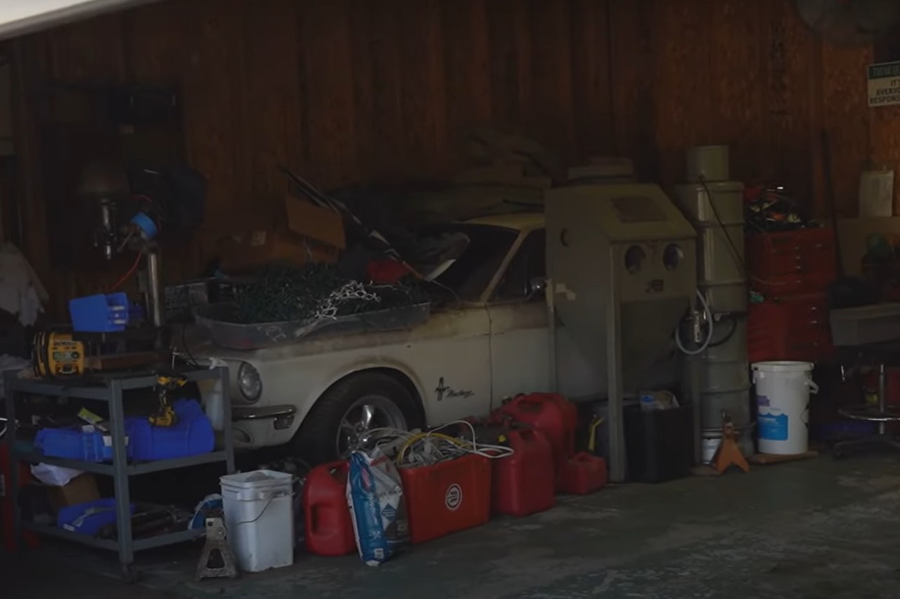 Se trata de un Ford Mustang (esta es su historia) de primera generación, comprado nuevo por un piloto de United Airlines. En 2002 lo compró su actual propietario y, después de usarlo un tiempo, lo dejó en una esquina de un garaje y ahí ha permanecido hasta ahora.