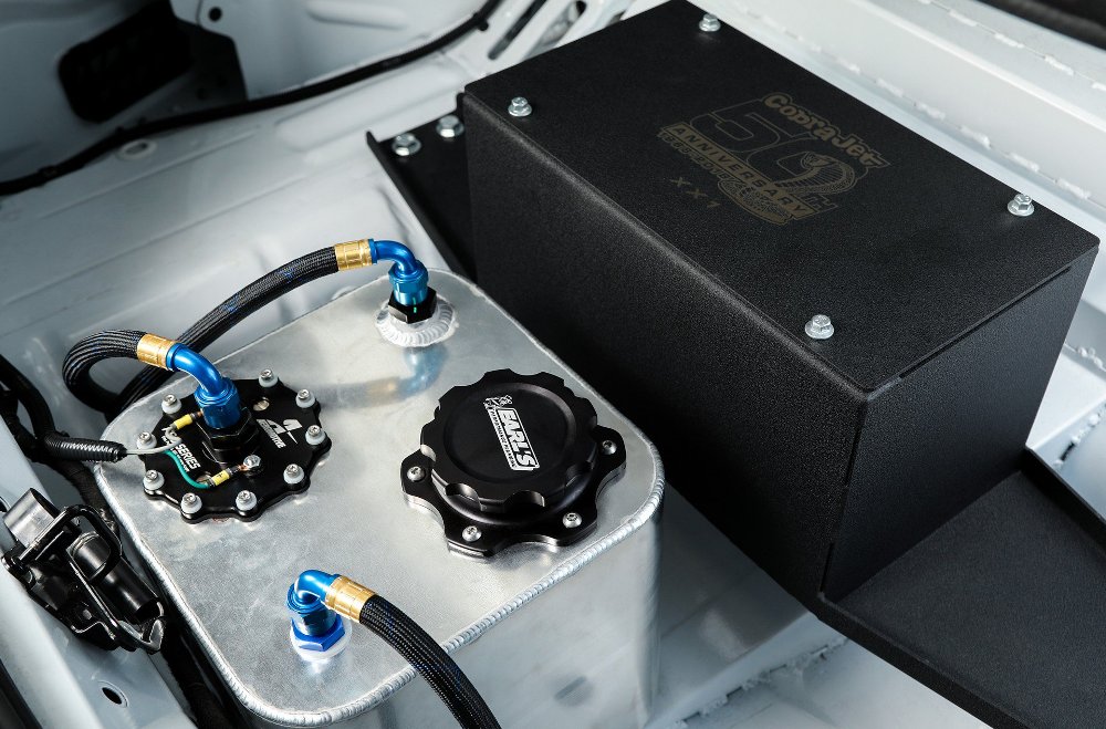 El nuevo Mustang Cobra Jet es un hito en la historia del Ford Mustang y, por ello, ha sido equipado con un frontal rediseñado que se hace eco del modelo de calle. El coche estará disponible exclusivamente en colores Race Red y Oxford White, mientras que los clientes tendrán la posibilidad de añadir al conjunto unos gráficos exclusivos por el 50º aniversario.