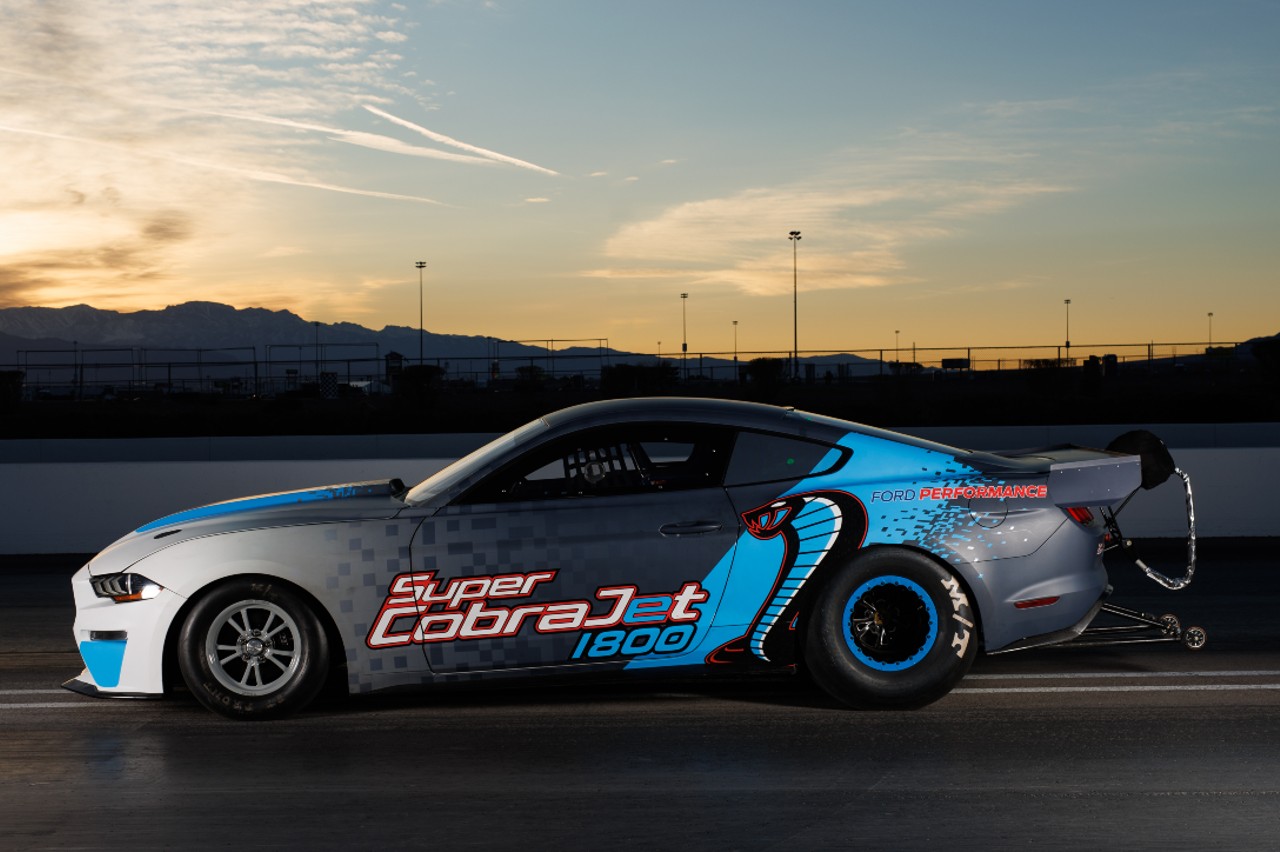 En septiembre de 2020, la marca del óvalo presentó el Ford Mustang Cobra Jet 1400, un prototipo eléctrico para carreras de aceleración con 1.523 CV que completó el cuarto de milla (402 metros) en la National Hot Rod Association (NHRA) en 8,128 segundos a una velocidad de más de 270,37 km/h. Ahora, vuelve de nuevo a la carga y presenta este Ford Mustang Super Cobra Jet 1800.