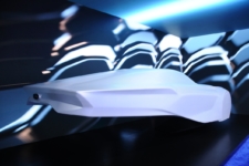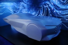 Un capó largo fluye hacia un elegante compartimento para pasajeros similar a una cabina. Su forma de lágrima crea la línea fluida que conforma el techo y conduce a la parte trasera. Un elemento de esta escultura que resulta realmente llamativa es la forma de la aleta posterior, puntiaguda y bien definida que recuerda a los coches de Ford de la década de 1950 y 1960.