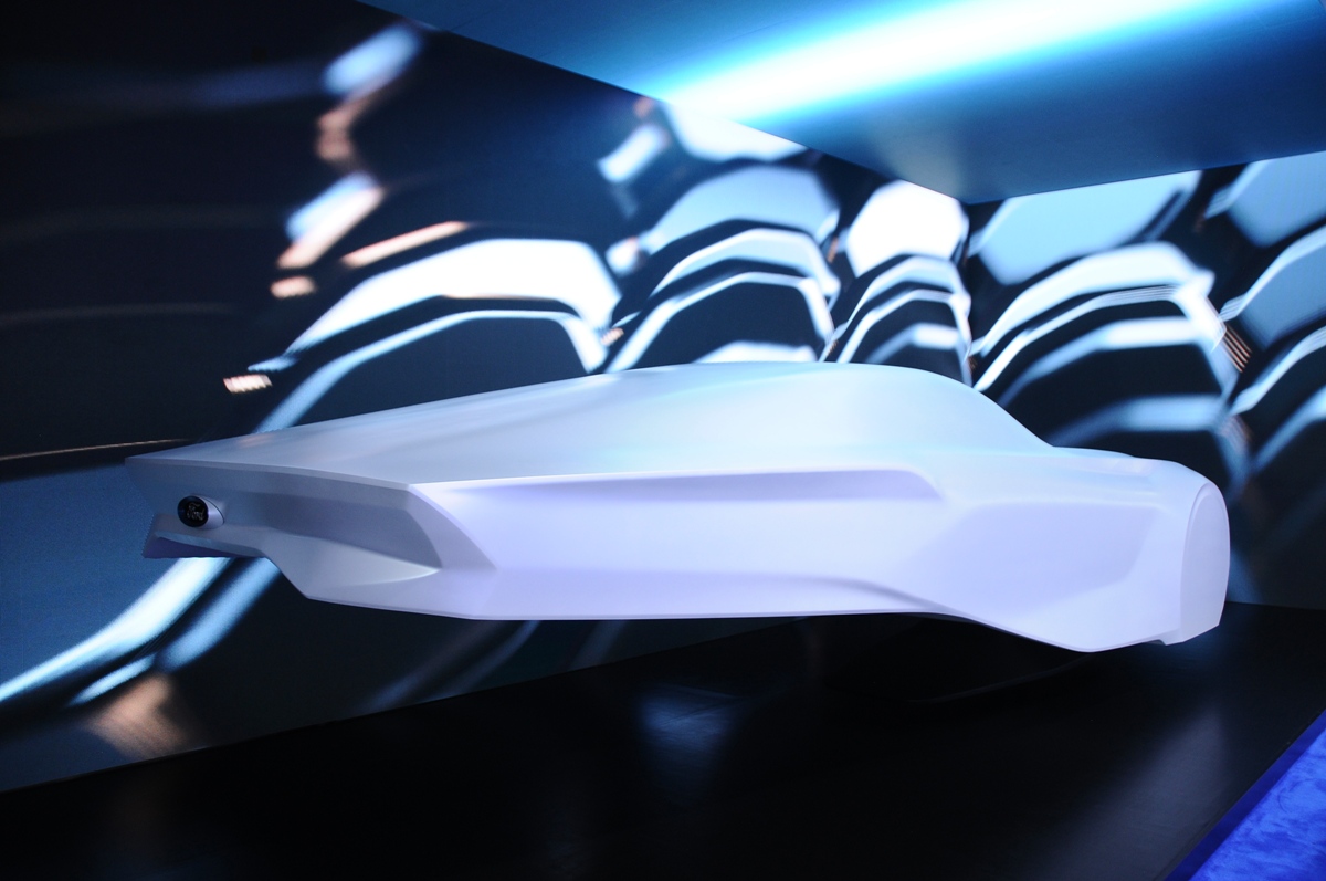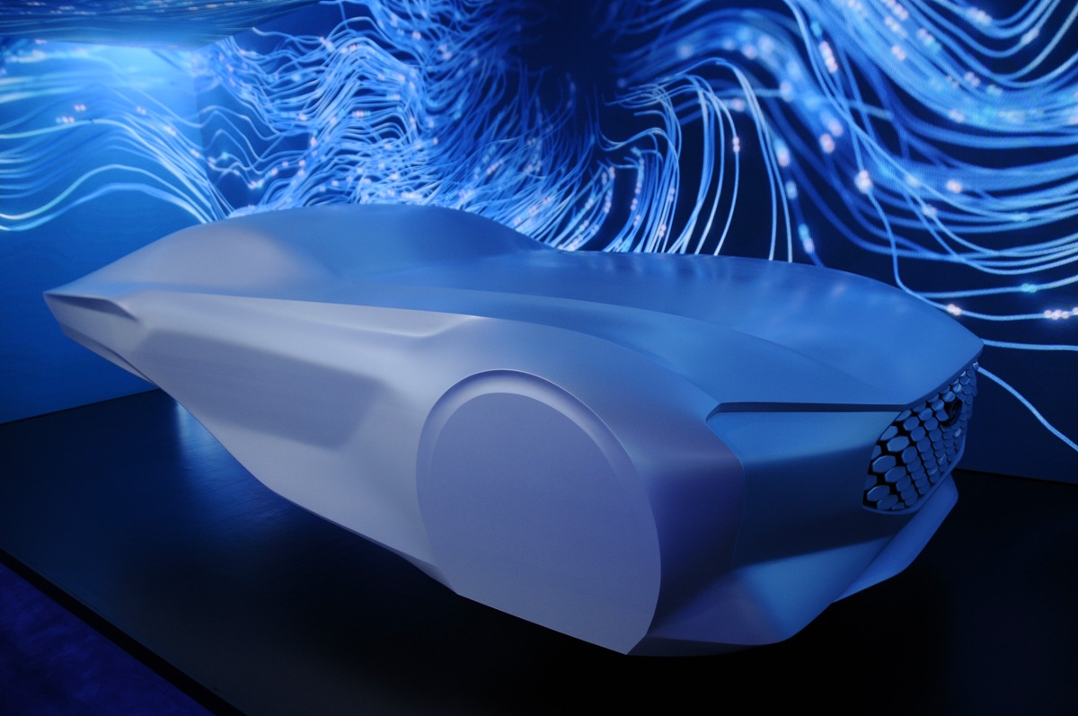 Esta escultura nos muestra un primer vistazo del futuro lenguaje de diseño de Ford, el cual ha sido bautizado como “Progressive Energy in Strength”, algo así como “Energía Progresiva en Fuerza”. Esta obra representa un vehículo de perfil que se estrecha el punto de desaparecer en la parte posterior, con una parte delantera musculosa que invita a pensar en cómo podría ser el futuro Ford Mustang -conoce su historia completa-.