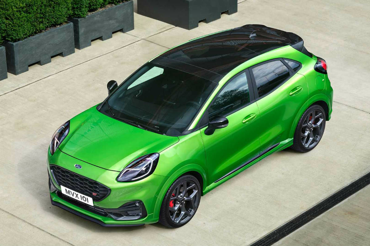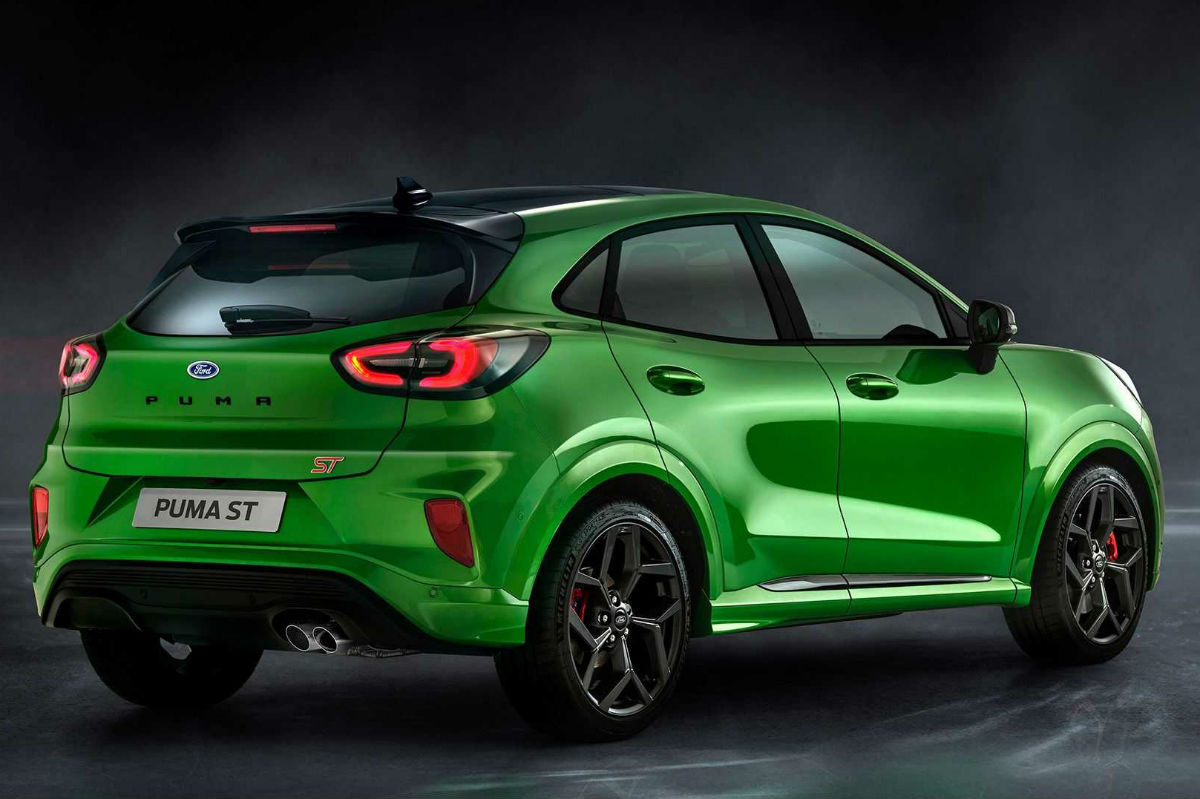 En términos generales se mantiene el diseño y las proporciones del Ford Puma de serie, un modelo que ya destaca por su atletismo, aunque se suman detalles específicos como la parrilla negra con trama hexagonal, las carcasas de los retrovisores en el mismo color, un paragolpes delantero en el que una moldura negra agrupa entrada de aire y faros antiniebla, llantas de aleación de 19 pulgadas, un alerón, un difusor con una salida de escape doble situada a la derecha y el exclusivo color Verde Mean para la carrocería (aunque habrá disponibles otros cinco).