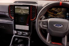 El interior sigue esta misma tónica robusta y de inspiración todoterreno. El nuevo Ranger Raptor 2023 presenta asientos deportivos, detalles en color Code Orange, iluminación ambiental con un brillo ámbar y un volante deportivo calefactado de cuero con levas de cambio de magnesio. Además, se ofrecen avances tecnológicos como un cuadro de instrumentos digital de 12,4 pulgadas y una pantalla táctil central de 12 pulgadas para el sistema de infoentretenimiento SYNC 4 de Ford, con Apple CarPlay, Android Auto y un sistema de sonido B&O de 10 altavoces.