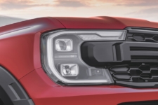 Vayamos desde el exterior hacia el interior. A nivel de diseño, el nuevo Ford Ranger Raptor 2023 luce una parrilla prominente con la inscripción ‘FORD’ en el centro, flanqueada por dos faros de LED matriciales en forma de C. Debajo, un parachoques todoterreno integra una gran placa protectora de acero de alta resistencia de 2,3 mm de grosor que da paso a un escudo inferior para el motor y otro para la caja de transferencia.