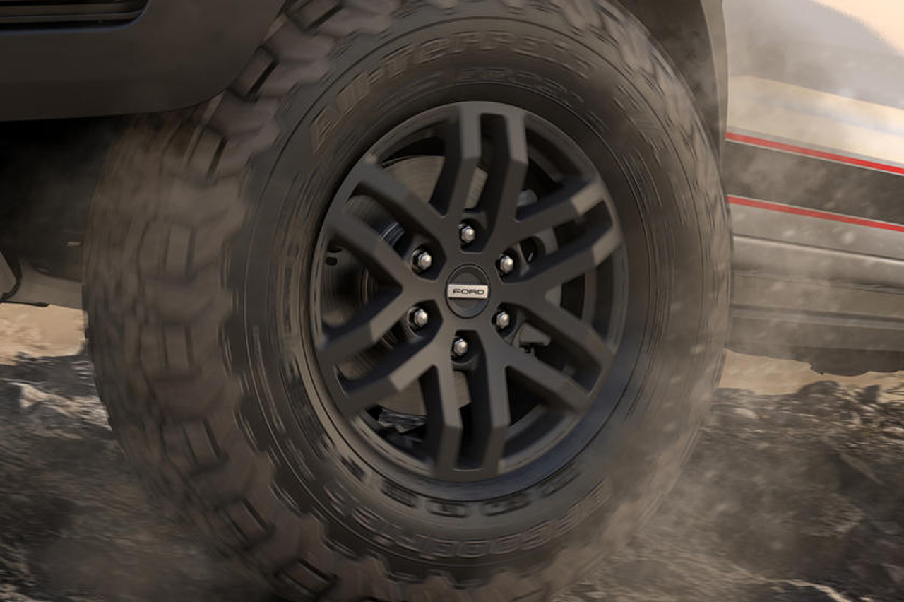 Los cambios continúan con la adición de unas nuevas barras sobre la caja de carga, que reemplazan el arco aerodinámico que montaba hasta ahora. Otras novedades son los puntos de remolque delanteros, que ahora están pintados en rojo; el acabado mate de la parrilla, paragolpes, aletas o tiradores de las puertas; o el logotipo de Ford que luce sobre el portón, que ahora tiene fondo negro.