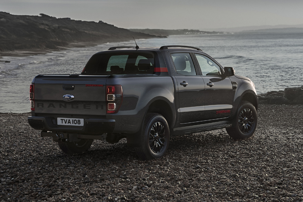 Por dentro, esta edición especial del Ford Ranger deslumbra con unos asientos tapizados en cuero con la leyenda “Thunder” bordada en rojo a modo de contraste. Este último tono está presente igualmente en las costuras del volante, de los asientos, del panel de instrumentos y en otros puntos clave del habitáculo. En cuanto el equipamiento, es idéntico al de un Wildtrack sobre el que añade elementos como el revestimiento protector de la caja, la persiana enrollable o un práctico divisor para el espacio de carga.