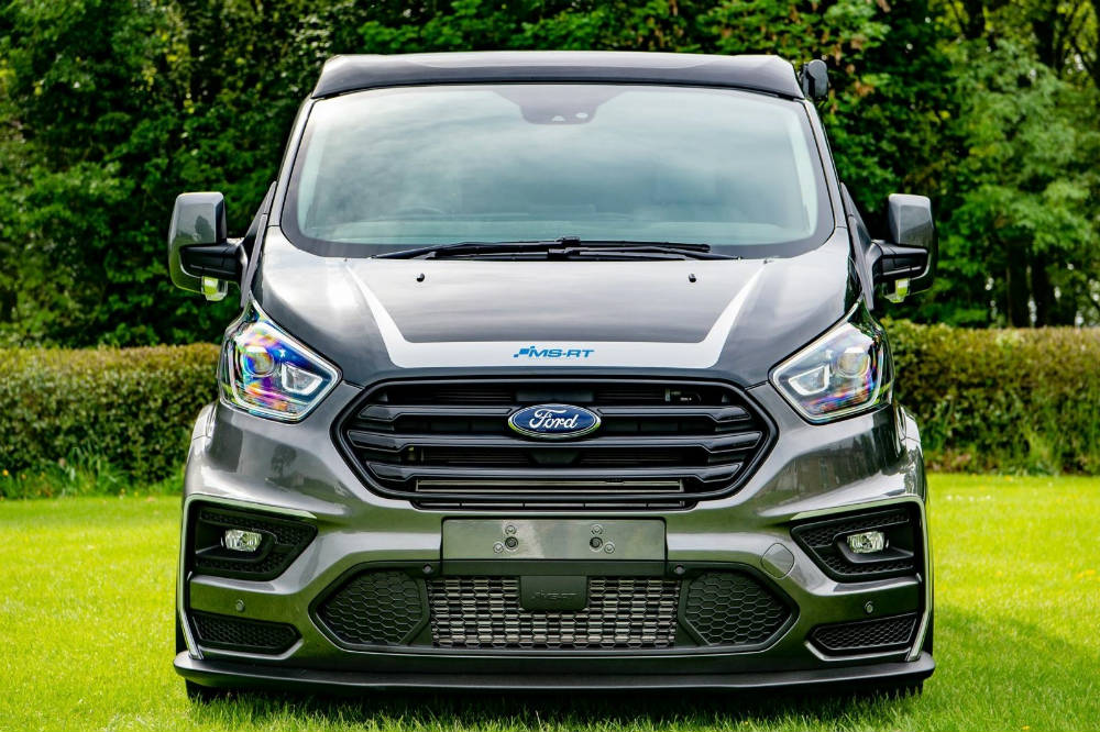 El resultado es una furgoneta de aspecto imponente y cargada de detalles y equipamiento. La Ford Trasit luce un completo kit de carrocería con paragolpes y faldones, llantas OZ de 18 pulgadas embutidas en neumáticos Hankook Ventus S1 Evo 245/45 R18, dos salidas de escape y un conjunto de gráfico que decoran el exterior con el negro como protagonista y el número 27, en tono plateado, tanto en los laterales como en el portón trasero.