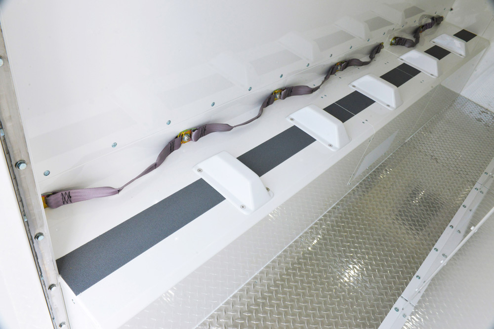 Según la marca, el Transit PTV puede trasportar a 12 prisioneros en su interior, distribuidos en tres pequeñas celdas. La cabina monta un sistema de comunicación policial y un panel de control para manejar las distintas funciones del vehículo, como activar las luces o la sirena, por ejemplo.