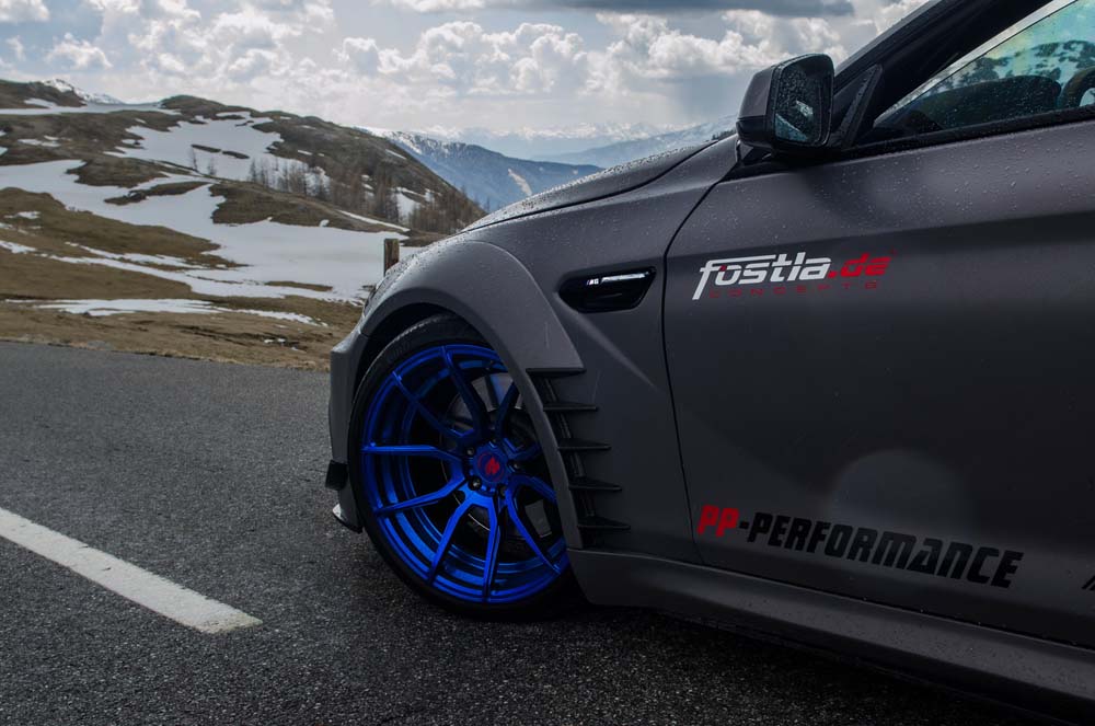 No somos muy partidarios del tuning, pero en algunos casos, más bien pocos, el resultado es más que aceptable. Es el caso del Fostla BMW 650ix Gran Coupe, que tomando como base el coupé de cuatro puertas, la compañía ha realizado un trabajo llamativo. Para ello ha utilizado un kit de carrocería denominado PD6xx firmado por Prior Design. Gracias a éste equipa unos pasos de rueda más anchos, un labio inferior en el paragolpes delantero, un alerón sobre la tapa del maletero y un difusor en el paragolpes posterior. Toda la obra viste un vinilo gris mate con diferentes adhesivos, elementos que acrecientan su personalidad. Dan la nota cuatro llantas de 20 pulgadas compuestas de dos piezas y pintadas en azul que calzan neumáticos 245/30, delante, y 295/30, detrás. Asimismo, en colaboración con ASG-Sound se ha trabajado en un escape con cuatro salidas, dos a cada lado, en carbono.
