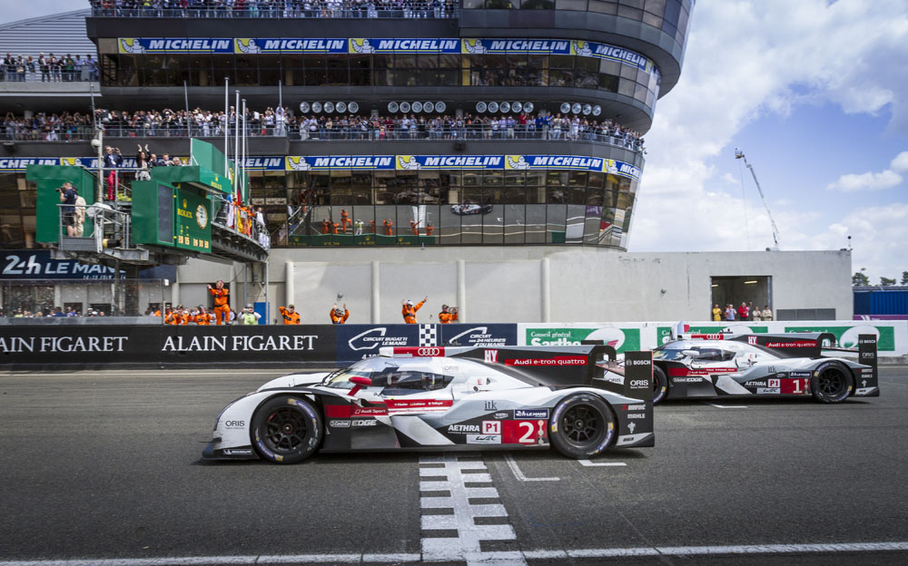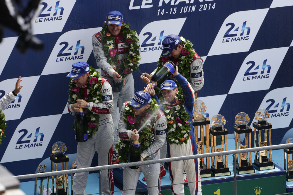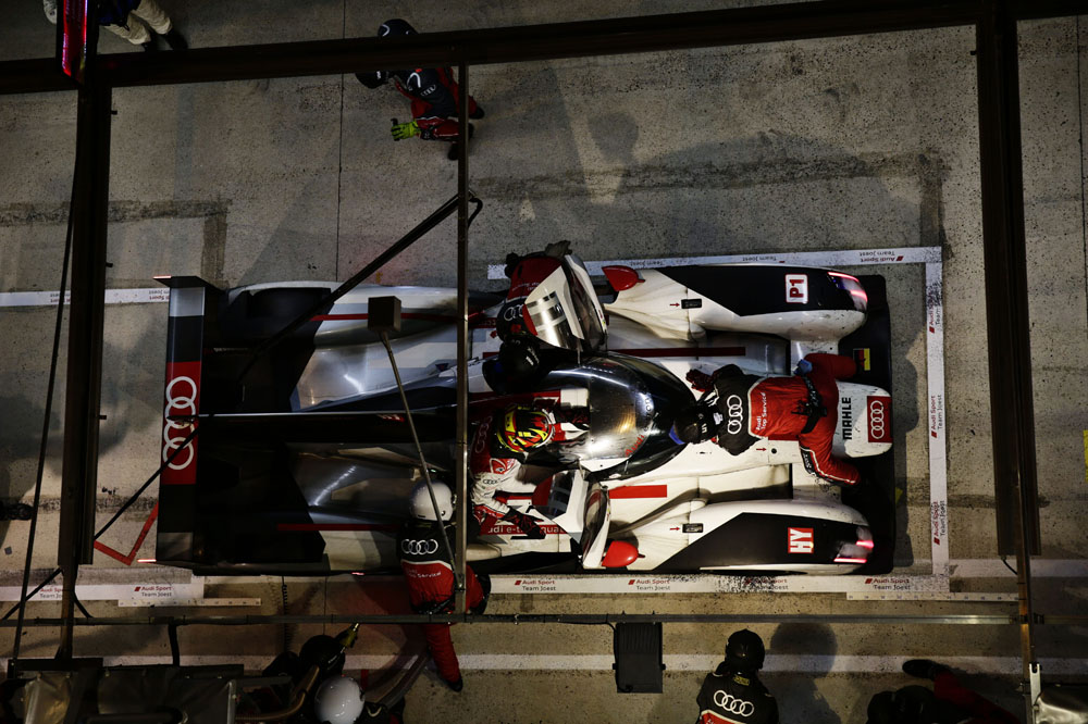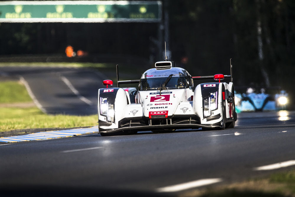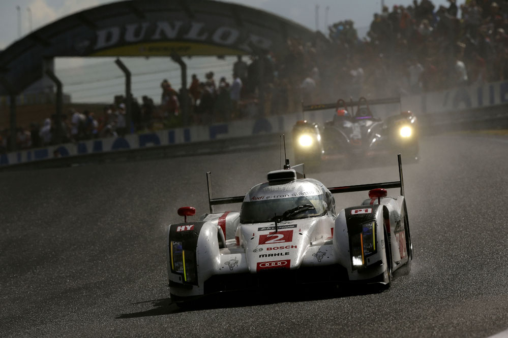 Los tres grandes rozaron el triunfo; primero Toyota con el TS040 Hybrid de Alexander Wurz, Stéphane Sarrazin y Kazuki Nakajima, después Porsche con el 919 Hybrid de Mark Webber, Brendon y Hartley, y Audi por partida doble, con el Nº2 de Lotterer, Fassler y Treluyer y con el Nº1 de Kristensen, Gené, Di Grassi.