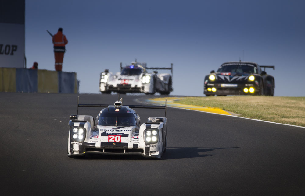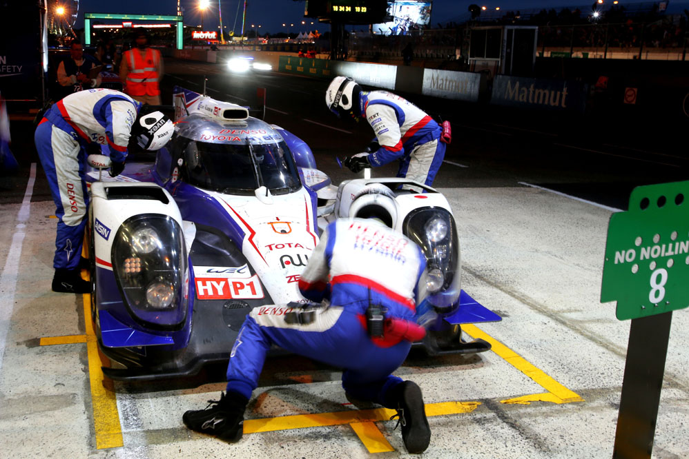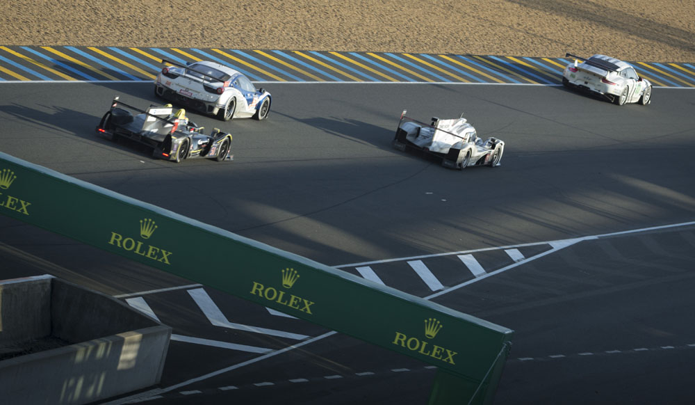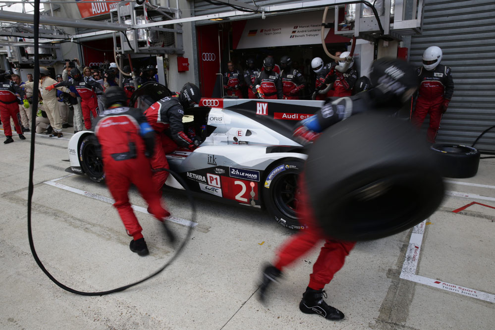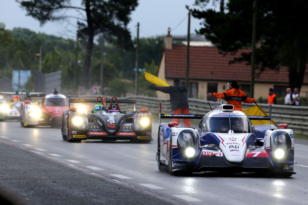 Los tres grandes rozaron el triunfo; primero Toyota con el TS040 Hybrid de Alexander Wurz, Stéphane Sarrazin y Kazuki Nakajima, después Porsche con el 919 Hybrid de Mark Webber, Brendon y Hartley, y Audi por partida doble, con el Nº2 de Lotterer, Fassler y Treluyer y con el Nº1 de Kristensen, Gené, Di Grassi.