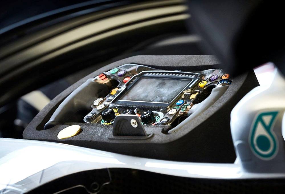 En este caso, el volante actúa como la unidad central mediante la cual se pueden operar todos estos elementos, con un fácil acceso para el piloto. Según Mercedes, la construcción de una sola rueda giratoria del volante requiere de un equipo de diseñadores mecánicos, diseñadores eléctricos y técnicos de cableado, los cuales invertirán una media de 80 horas de trabajo para ensamblarla.