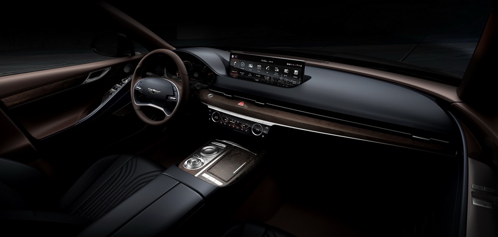 Por dentro, el Genesis G80 2020 deslumbra con una combinación de diseño elaborado, materiales lujosos y mucha tecnología. Según la marca, se ha aumentado la calidad de los acabados e incrementado la habitabilidad, pues a pesar de su estética, hay más espacio para la cabeza y las piernas de los ocupantes. En el salpicadero nos encontramos un cuadro de mandos digital de 12,3” con tecnología 3D y junto a este, una pantalla para el sistema multimedia de 14,5 pulgadas.