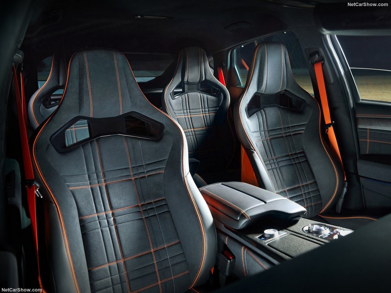 La estética deja paso a materiales de gran calidad y rendimiento, como las llantas de aluminio forjado que dejan a la vista los frenos de alto rendimiento, o el techo fabricado en fibra de carbono. En el interior llama la atención la configuración de solo cuatro asientos, un habitáculo con un puesto de conducción muy tecnológico. Contamos, por supuesto, con una pantalla multimedia de gran tamaño.