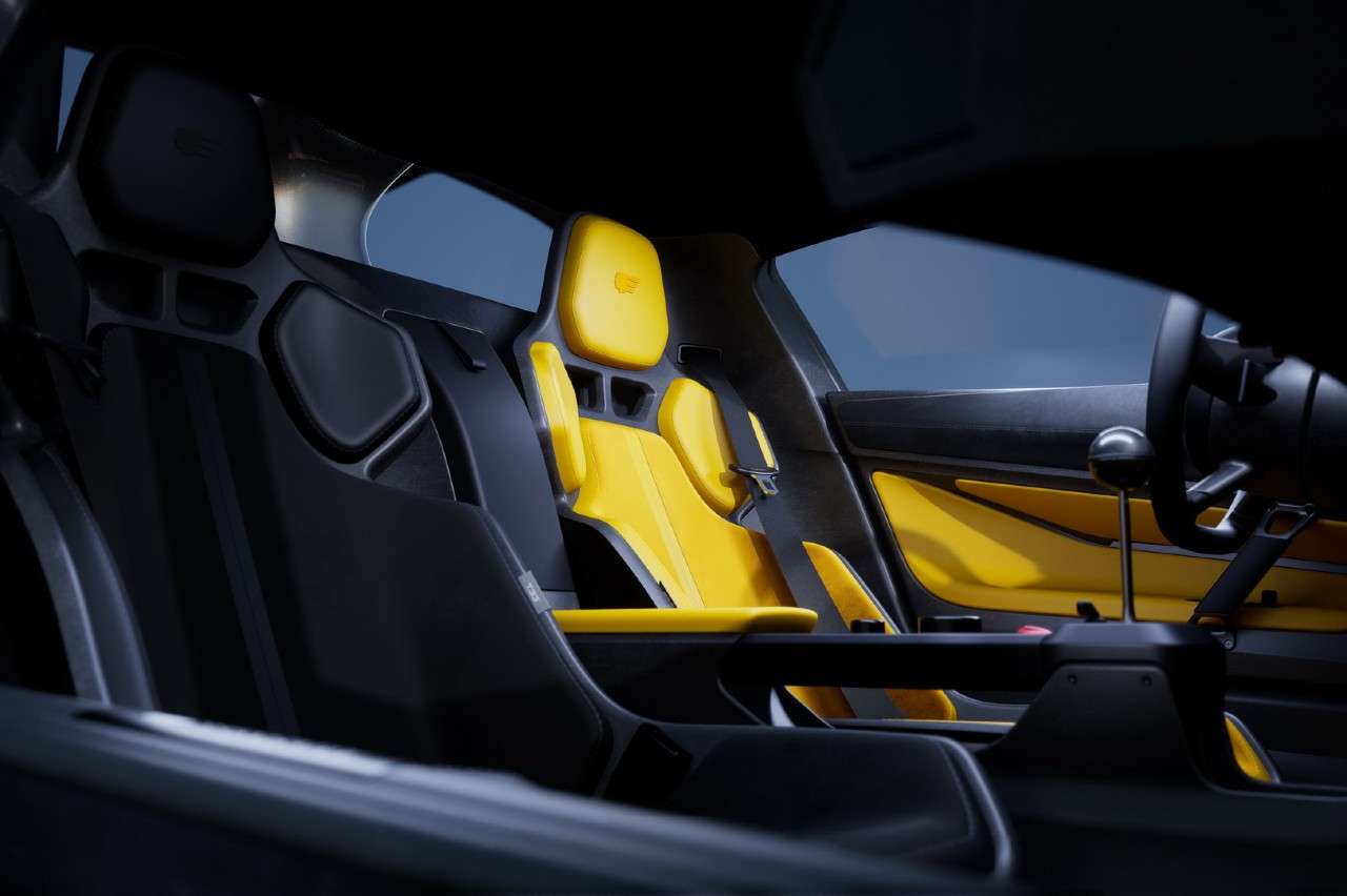 El interior es más convencional que el de su hermano, que replicaba el habitáculo triplaza del McLaren F1. En este caso hablamos de un modelo biplaza, con un diseño minimalista hasta el extremo, con dos pequeñas pantallas y un cuentarrevoluciones analógico a modo de cuadro de instrumentos, sin siquiera una consola central.