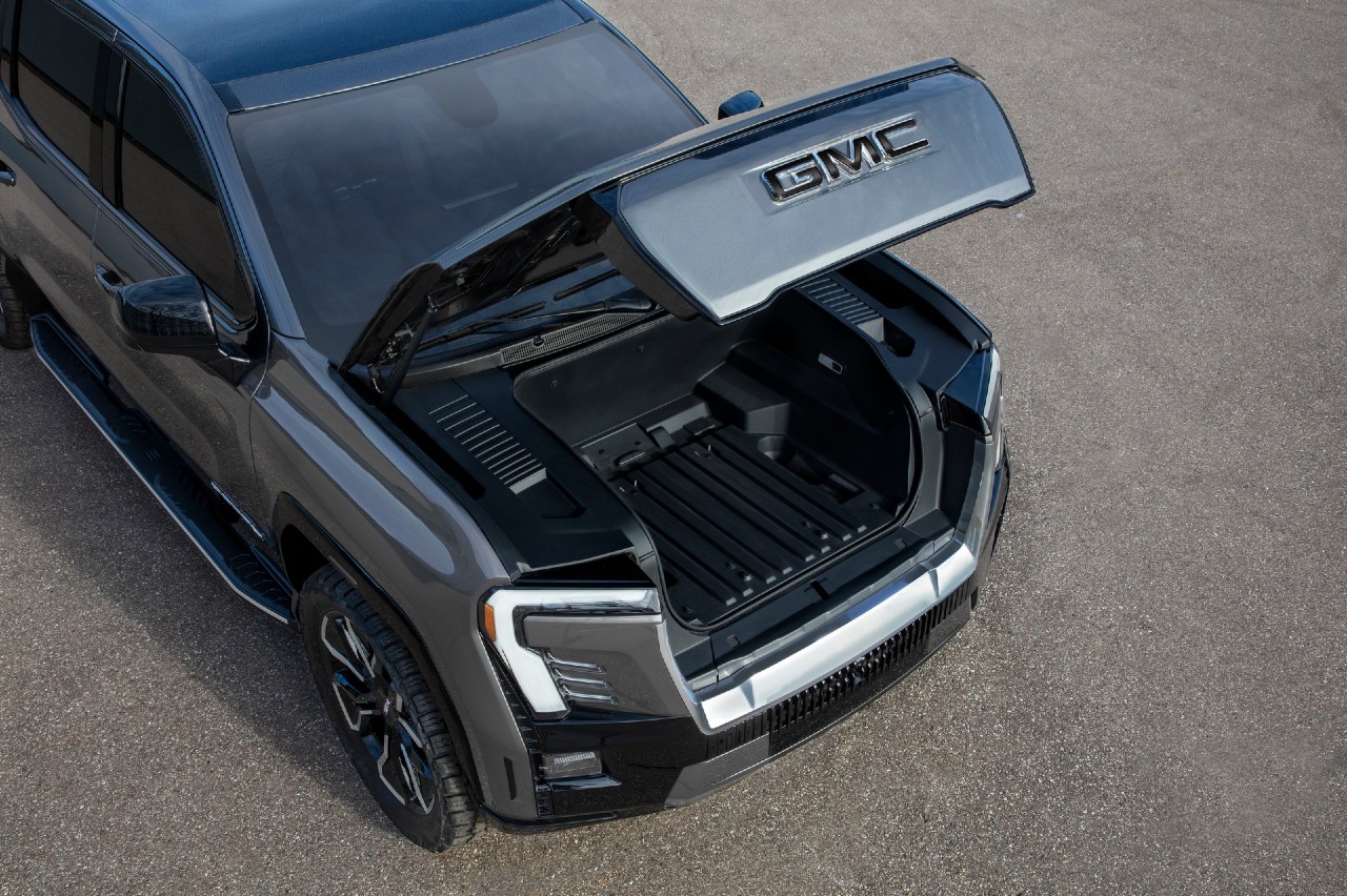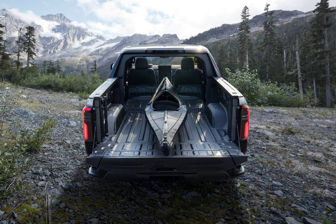 Empezando por la de acceso, el GMC Sierra EV Elevation tiene llantas de 18 pulgadas, neumáticos de 33, sistema multimedia de 16,8, un ‘frunk’ eléctrico y un portón trasero multifunción. El GMC Sierra EV AT4 tiene un enfoque más campero, las llantas son de 18”, los neumáticos de 35”, cuenta con 51 mm extra de distancia libre al suelo y dispone de las funciones Terrain Mode, CrabWalk, Super Cruise y cuatro ruedas direccionales.
