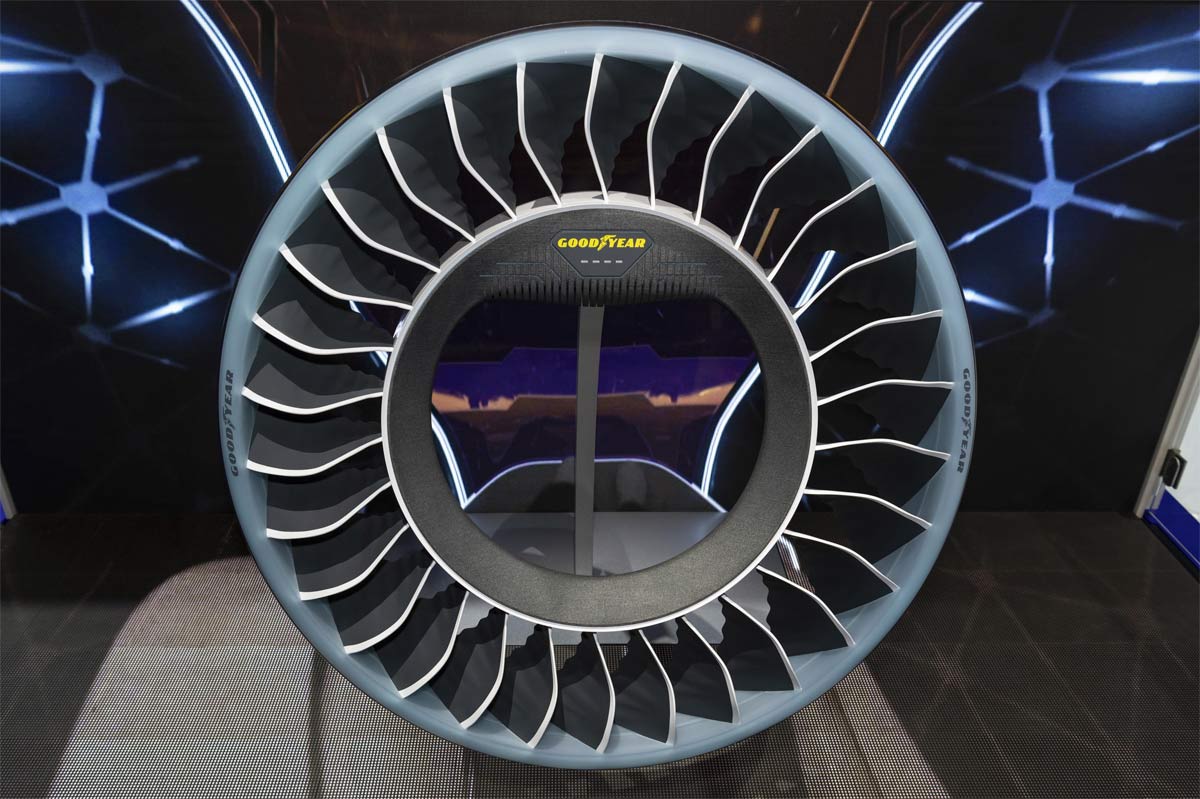 La firma de neumáticos ha presentado en el Salón de Ginebra 2019 el Goodyear Aero, el neumático hélice que equiparán los coches autónomos voladores del futuro.