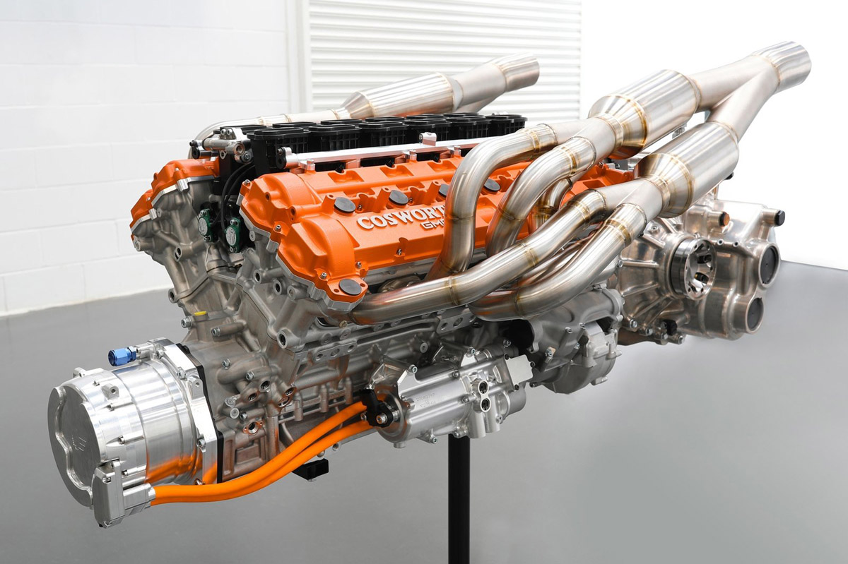Pero sin duda lo más increíble de este motor es su capacidad para girar a altas revoluciones y su rendimiento. Una obra maestra firmada por Cosworth que produce 663 CV a 11.500 rpm y 467 Nm a 9.000 vueltas y tiene una capacidad para subir de vueltas asombrosa: 28.400 revoluciones por segundo, por lo que al acelerar en punto muerto puede pasar del ralentí al corte de inyección en décimas de segundo. Con 166 CV por litro de cilindrada, este bloque de aluminio, acero y titanio pesa tan solo 178 kilogramos.