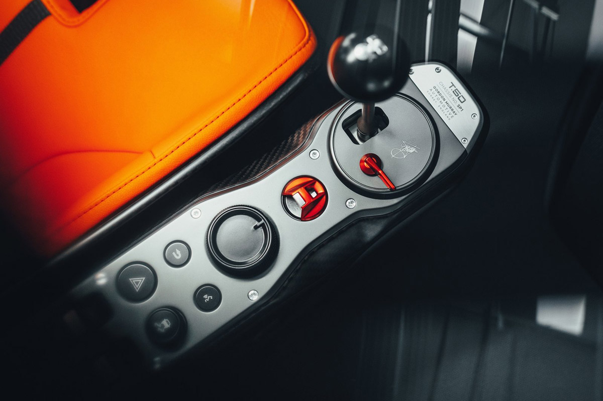 Otra característica francamente sorprendente del GMA T.50 es que tiene tres plazas y 288 litros de espacio para transportar el equipaje, más que cualquiera de sus rivales. Como en el F1, el conductor está situado en posición central, con los dos pasajeros a cada lado y por detrás de él. Frente a él, encuentra un volante redondo con un aro fino y los controles para manejar las pantallas que hay en el cuadro de instrumentos, que está presidido por un tacómetro analógico mecanizado y tarado hasta las 14.000 rpm.