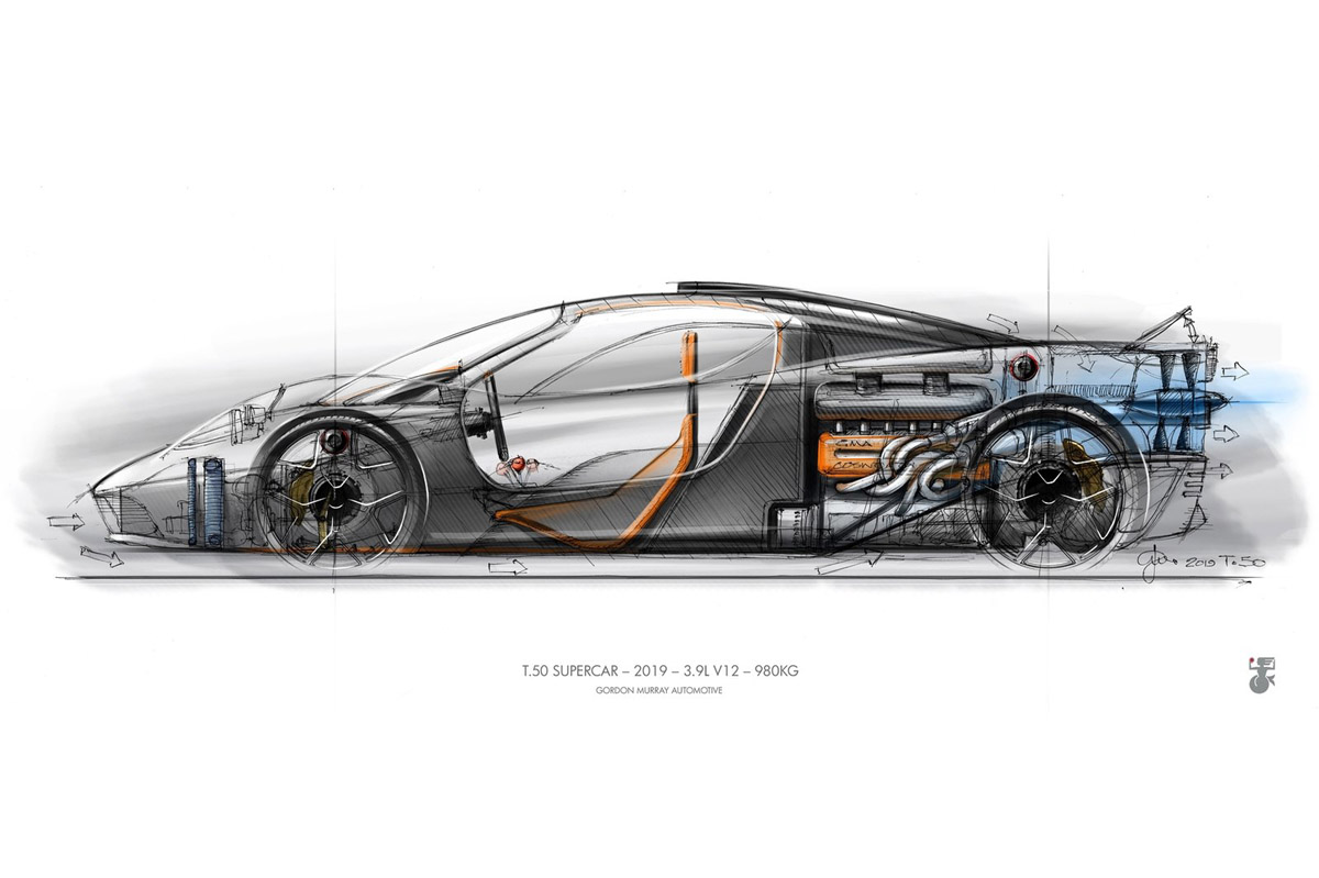 El GMA T.50 es por lo tanto el verdadero sucesor del McLaren F1, aunque no esté firmado por la marca británica. Como este, cuenta con un espacioso -para su tamaño- habitáculo con tres plazas, maleteros de verdad, un monstruoso motor V12 atmosférico con 663 CV y una caja de cambios manual. También tiene aerodinámica activa, que incluye un enorme ventilador en la zaga de 400 mm de diámetro y capaz de girar hasta 7.000 rpm para crear efecto suelo y poder prescindir así de los típicos apéndices en forma de alerones. Y todo ello con un peso de tan solo 986 kilogramos.