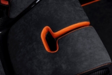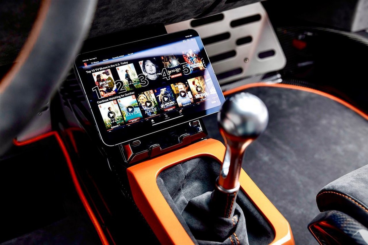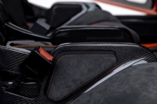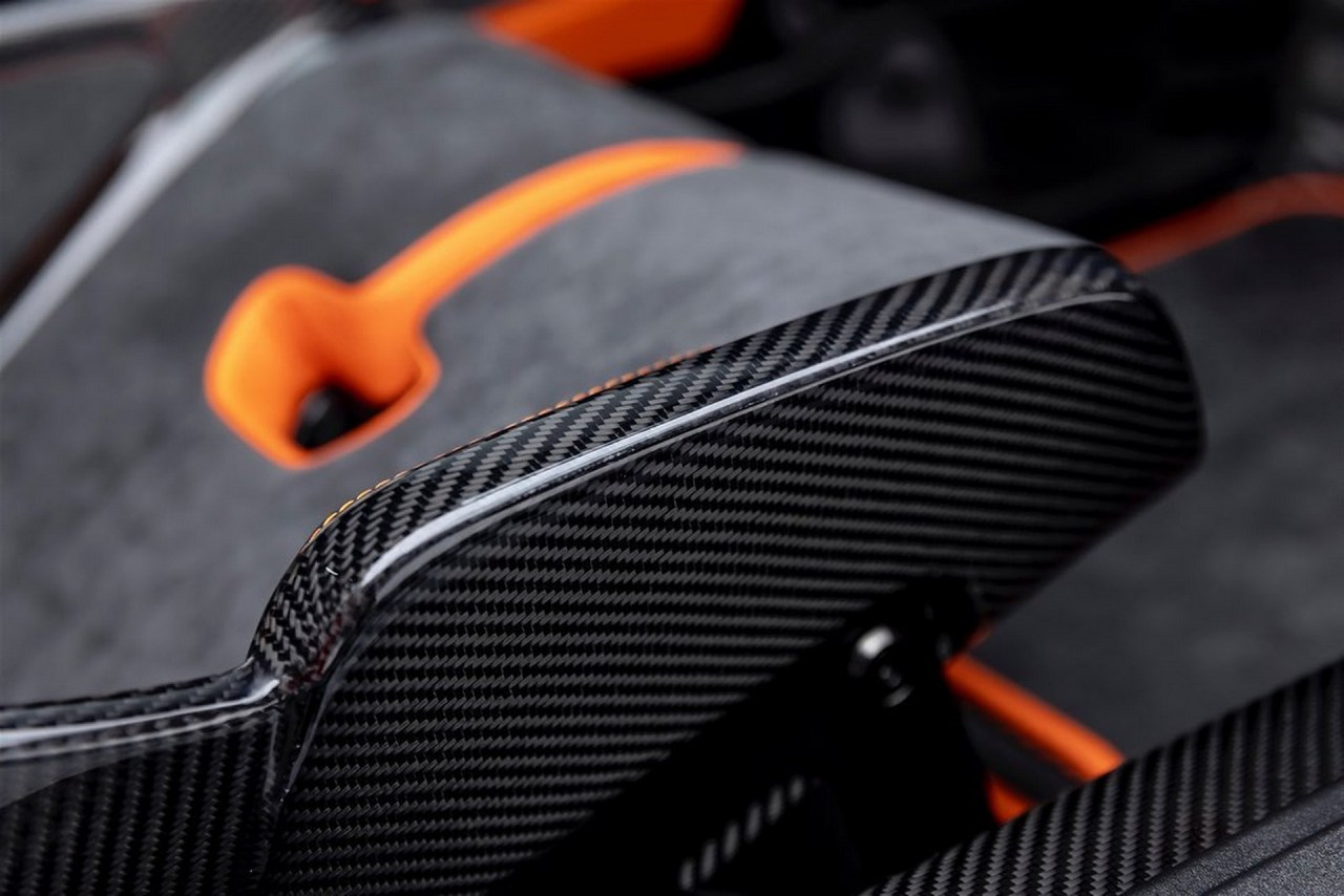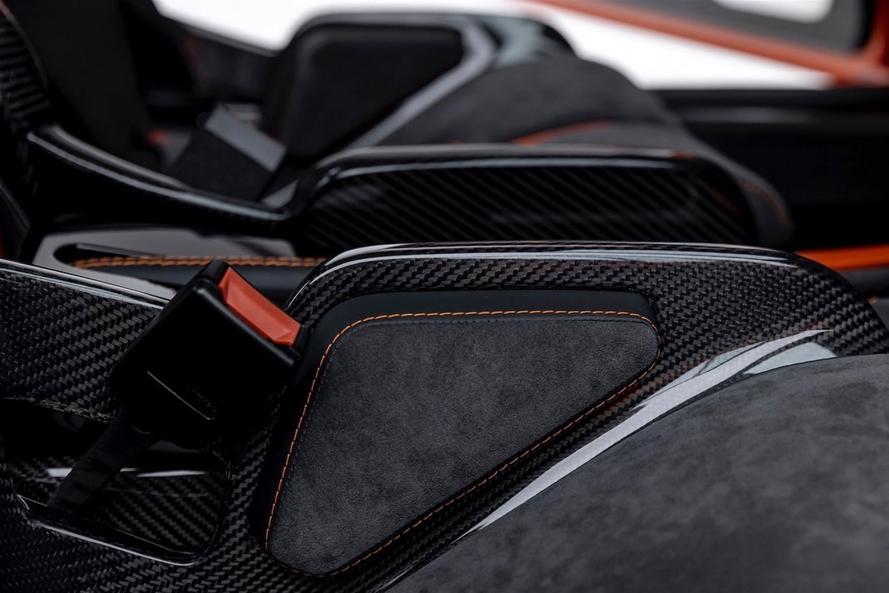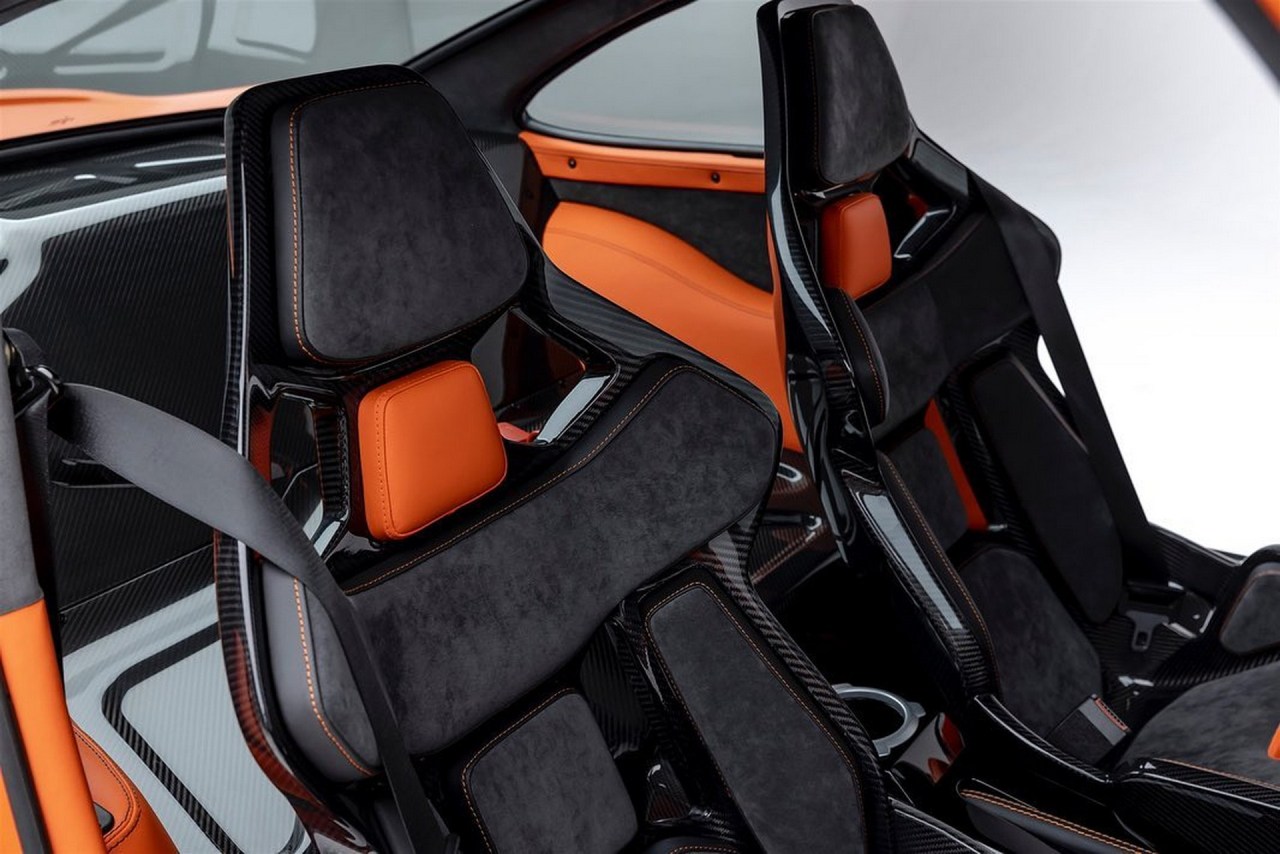 En el interior, Gunther Werks ha instalado multitud de superficies y elementos de fibra de carbono y Alcantara, así como detalles en color naranja a juego con la carrocería. Los nuevos asientos baquet de carbono se adaptan a la forma del cuerpo, mientras que el volante también está hecho de fibra de carbono y en la consola central hay un soporte inalámbrico para dispositivos móviles que ofrece carga inalámbrica.