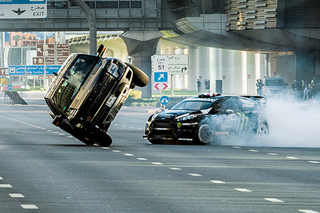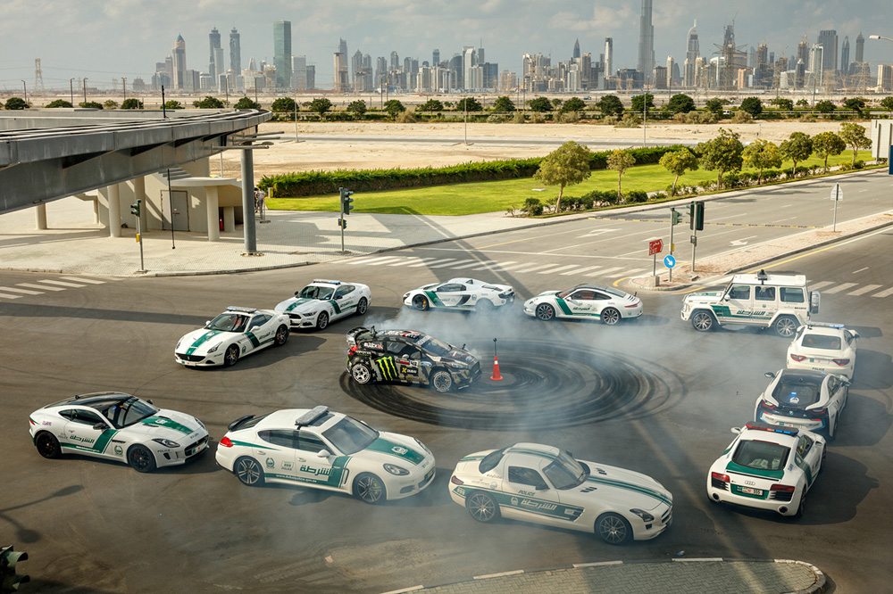 El tuit que publicó el piloto ya dejó claro que se ha trasladado hasta Dubai para grabar su nuevo trabajo. En la imagen que acompañaba esa la publicación nos adelantaba que aparecerían en el vídeo algunos de los deportivos que forman la flota de coches de la Policía de Dubai y, efectivamente, así ha sido. Para la ocasión, Ken Block utiliza un Ford Fiesta ST RX43 de nada más y nada menos que 650 CV de potencia, un vehículo radical pero que quizá no es tan espectacular como el Hoonicorn_RTR utilizado en la Gymkhana SEVEN.