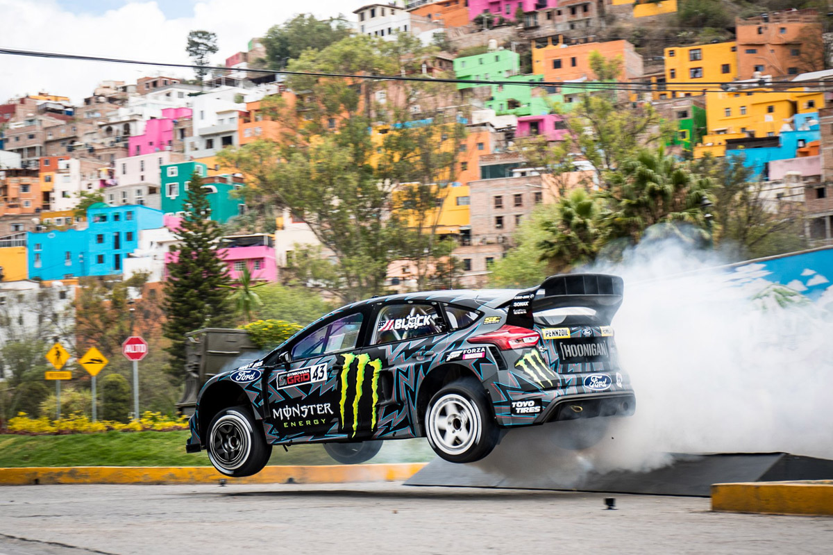 De ahí viaja hasta el pintoresco estado de Guanajuato, en México, donde hace una demostración de las capacidades de su llamativo Ford Focus RS RX. A continuación nos traslada hasta la californiana ciudad de Los Ángeles con Block a los mandos de su querido Ford Escort RS Cosworth (prueba), el mismo coche que poco después quedó calcinado tras un accidente y que será reconstruido para el 2019.