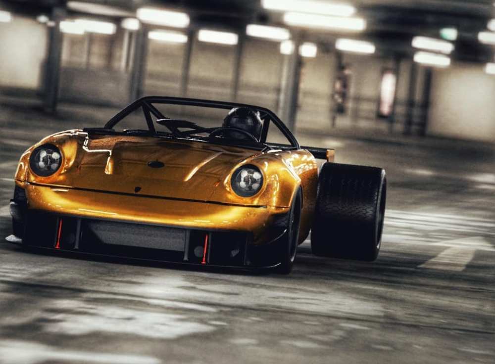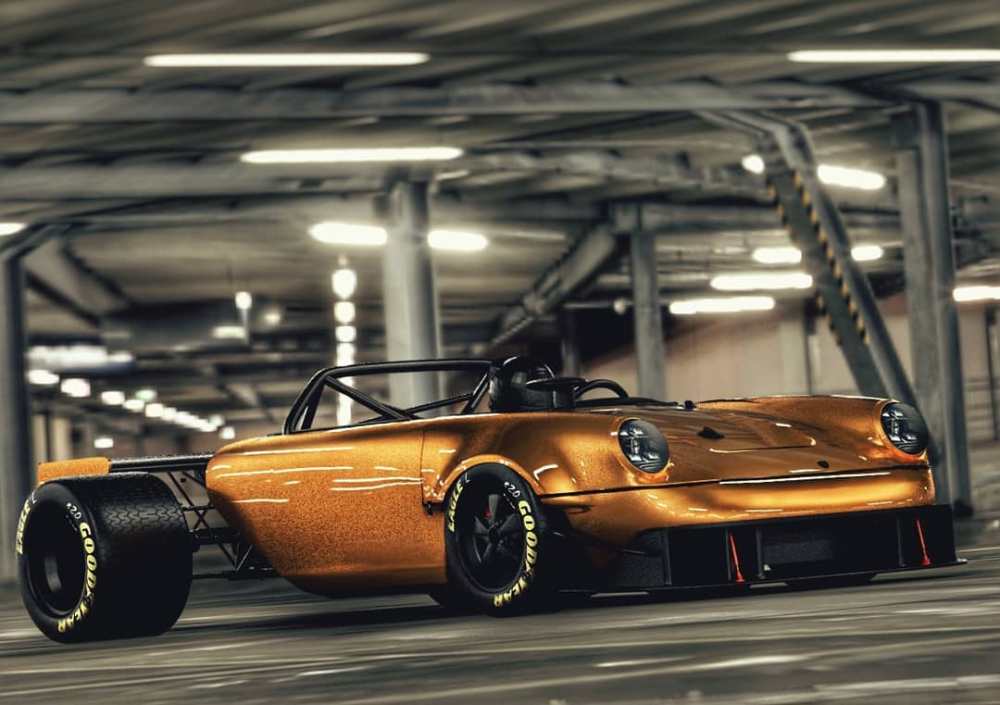 Tomando como base un Porsche 911 clásico, Oil Stain Lab propone cortar, literalmente, su carrocería por la mitad, justo a la altura de los pilares B para eliminar la sección posterior, incluido el motor. A este chasis se añadiría un nuevo chasis tubular donde descansaría el nuevo motor V8 y un eje posterior nuevo extremadamente ancho inspirado en los monoplazas antiguos de la Fórmula 1.