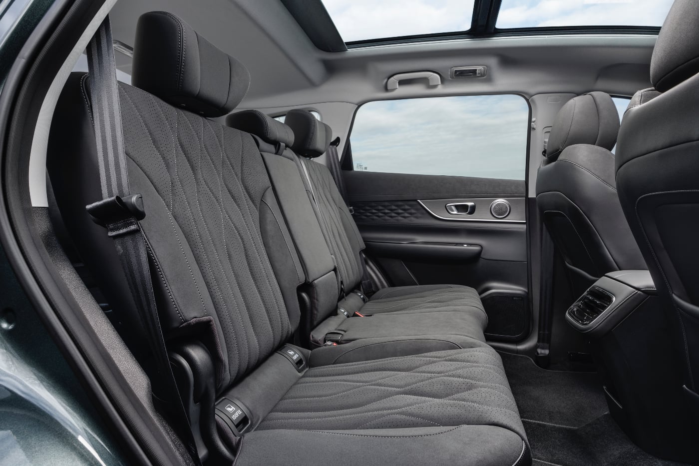 Y detrás de la segunda fila se halla una tercera con dos plazas con un espacio bastante bueno. Para acceder a ellas de forma más sencilla, la segunda se puede correr 40 mm. Aun así, no se consigue un hueco amplio.