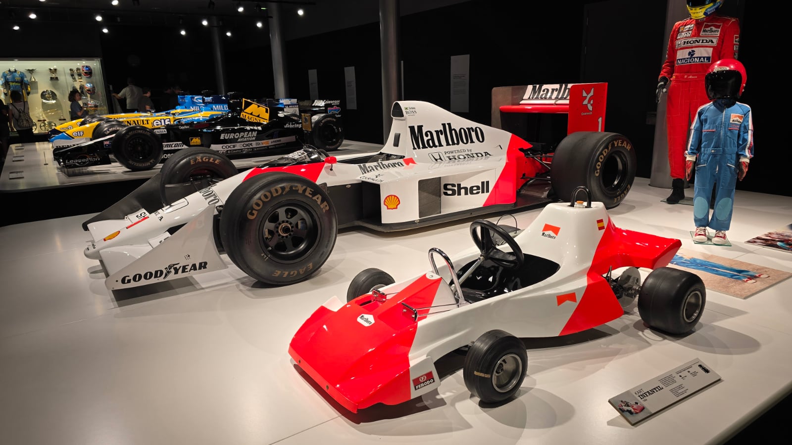 Allí podrás ver sus primeros karts, los monoplazas con los que ha competido en la Fórmula 1, con los que se hizo campeón, con los que ganó las 24 Horas de Le Mans, monos, botas, cascos y trofeos. También otros objetos importantes como diplomas -está el del Príncipe de Asturias- o la bandera de salida de las 24 Horas de Le Mans. Lo único que no podrás ver es su garaje privado, pero ya te lo desvelo yo.