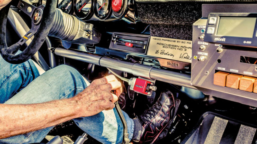 Sin embargo, una vez comprobaron la soldadura de los puntos de anclaje de la jaula antivuelco quedó claro que estaban ante el Heigo-Porsche original. “Los puntos de soldadura eran únicos. En 1979, diseñamos todos los componentes de este Heigo-Porsche específicamente para su participación en rallyes, de tal manera que los saltos no terminaran provocando una torsión excesiva”, explica Röscheisen y continúa comentando de dónde salió la peculiar combinación de colores: “Ginger Ostle (que trabajaba en el estudio de Diseño de Porsche en ese momento) colocó el coche bajo una lámpara y combinó los colores azul Petrol metalizado y blanco Grand Prix atendiendo a la sombra proyectada".