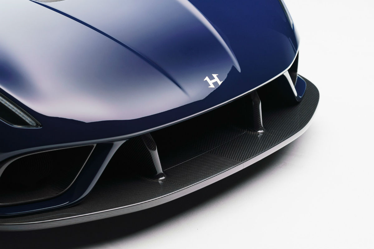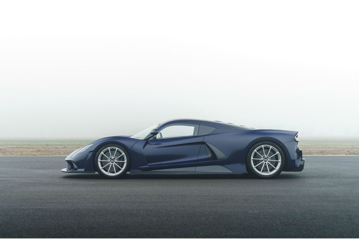 Las diferencias con el vehículo mostrado hace tres años son mínimas, con un aura de hiperdeportivo inconfundible, de baja altura y esculpido para poder circular a altas velocidades con la mínima resistencia. Su incisivo frontal es realmente bajo, luce un splitter y cuenta con enormes entradas de aire; en medio del capó aparece una toma de aire, los abombados pasos de rueda son necesarios para hacer hueco a las llantas de 19 pulgadas (en el eje trasero llegan a las 20), tras ellos hay grandes branquias, la línea de cintura es claramente ascendente y la zaga está rematada por un vistoso difusor y unas salidas de escape dobles centrales.