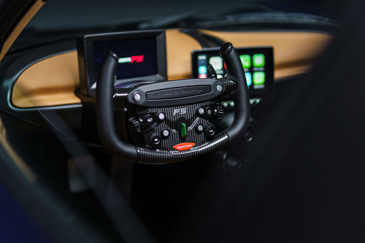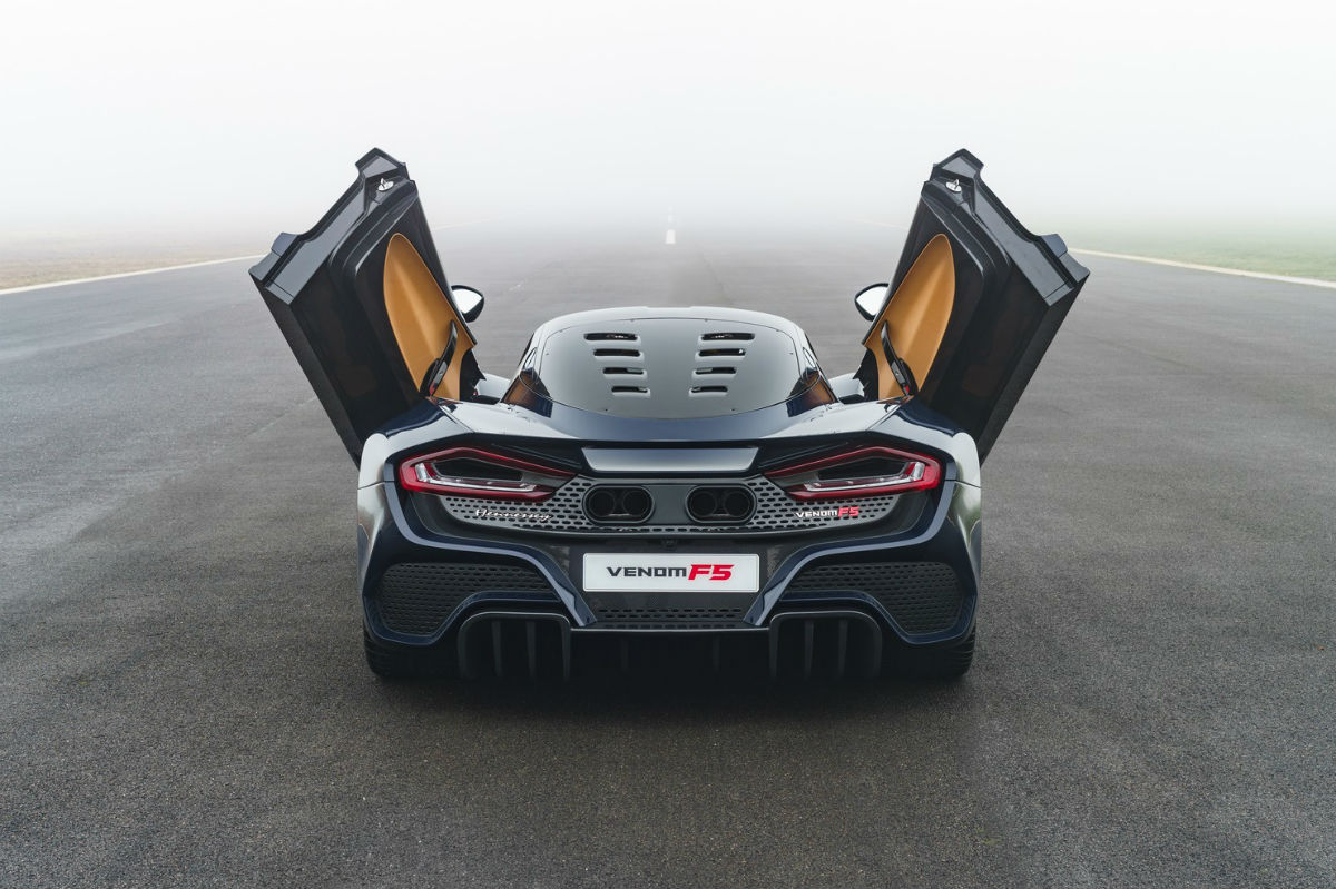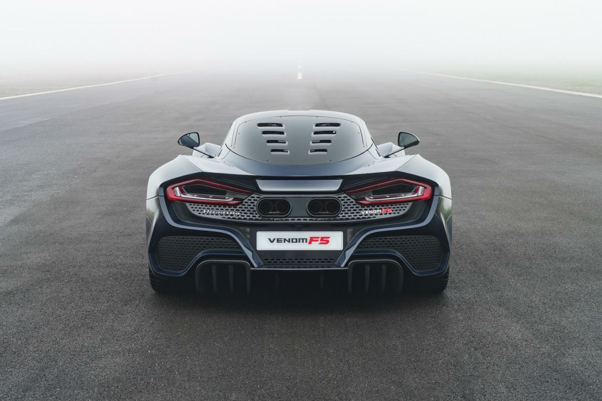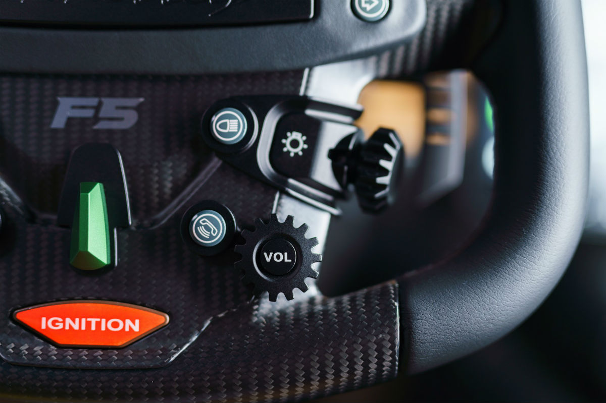 A ello ayudan tanto su ligero peso de apenas 1.360 kilos como, sobre todo, su motor. Monta un V8 de 6,6 litros con doble turbo que entrega 1.842 CV y 1.617 Nm. Las ruedas traseras y una transmisión semiautomática de siete relaciones se encargan de digerirlo para lanzar al F5 de 0 a 100 km/h en menos de tres segundos y de 0 a 200 km/h en menos de cinco. Eso cuando el conductor opte por el modo ‘F5’, aunque también están disponibles otros cuatro más dóciles (Sport, Track, Drag y Wet).