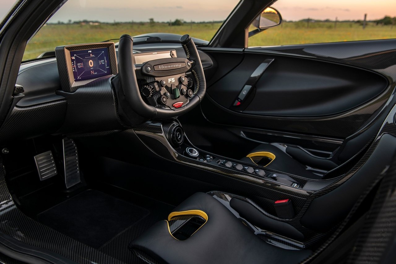 Construido sobre un chasis monocasco de fibra de carbono, monta un V8 de 6.6 litros y doble turbocompresor de Hennessey, que desarrolla unos increíbles 1.842 CV, cubierto por una cúpula de cristal templado. La compañía estadounidense no ha desvelado cifras de prestaciones, pero podría superar la barrera de las 300 mph, equivalentes a 483 km/h.
