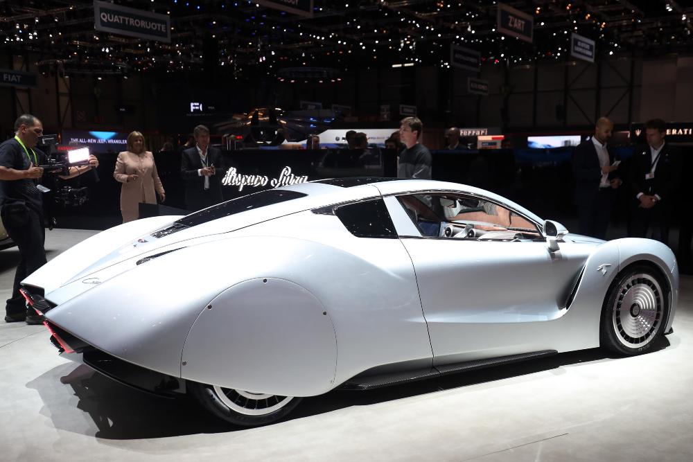 Aunque del interior no se han lanzado imágenes, el fabricante aseguró con anterioridad que tiene asientos compuestos de carbono, tapicería de cuero y Alcantara, y numerosos detalles de madera. Un reloj analógico, interruptores clásicos, inserciones de aluminio y una palanca de cambios triangular inspirada en los modelos anteriores de Hispano Suiza.