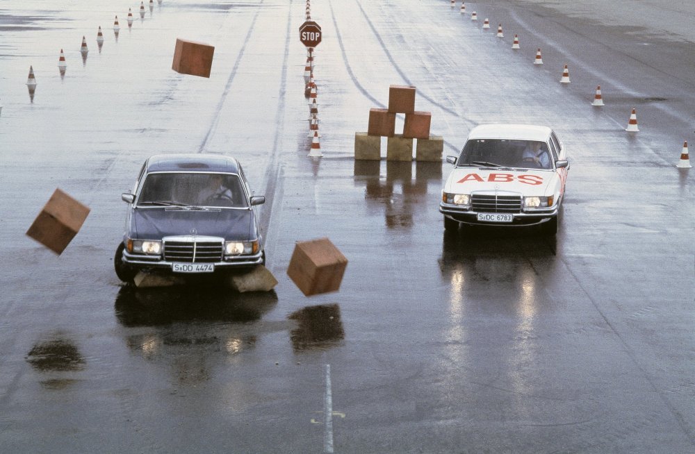 Entre los 9 datos que posiblemente desconocías sobre Mercedes-Benz figura el origen del sistema de frenos antibloqueo ABS. No fue hasta el 23 de agosto de 1978 cuando la firma de la estrella en colaboración con Bosch presentó por primera vez un sistema totalmente eficaz instalado en un coche de producción, el Mercedes Clase S W116 de 1978. Este sistema más tarde sería instalado en el hermano pequeño, el Mercedes Clase E, y en su principal rival, el BMW Serie 7 (prueba).