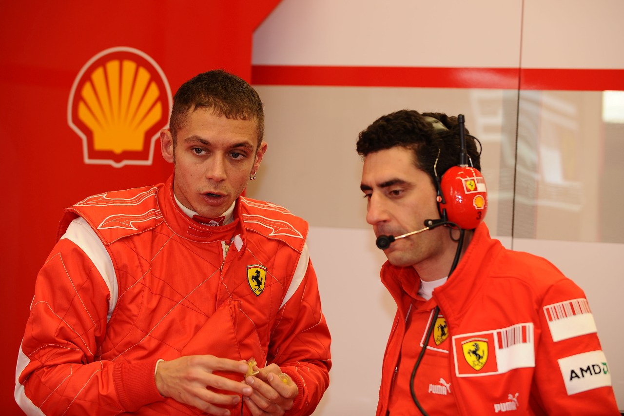 El mismo año en el que Rossi firmaba su sexto campeonato del mundo de ciclismo, el piloto italiano vivía un primer acercamiento al mundo de la Fórmula 1. Valentino estuvo presente en Fiorano para presenciar el shakedown de los coches que utilizaría la Scuderia Ferrari Marlboro en el próximo GP de San Marino que se iba a disputar el 25 de abril de ese mismo año. Rossi pudo acompañar a Michael Schumacher, Rubens Barrichello y Luca Badoer durante las pruebas, e incluso se puso a los mandos de un monoplaza. El mismo año, además, que Schumacher consiguió su último título mundial.