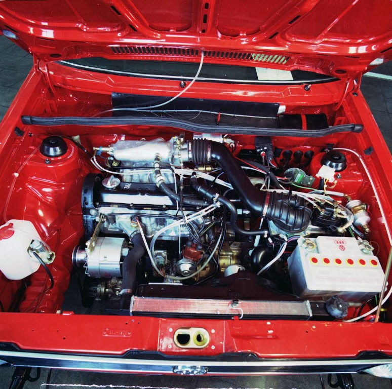El primer ‘Gran Turismo Injection’ equipaba un motor de aspiración natural y cuatro cilindros con 1.6 litros de capacidad que entregaba 110 CV a 6.100 rpm. Estaba alimentado por una inyección mecánica de combustible Bosch K-Jetronic y asociado a una transmisión manual de cuatro velocidades que más tarde sería reemplazada por una de cinco.