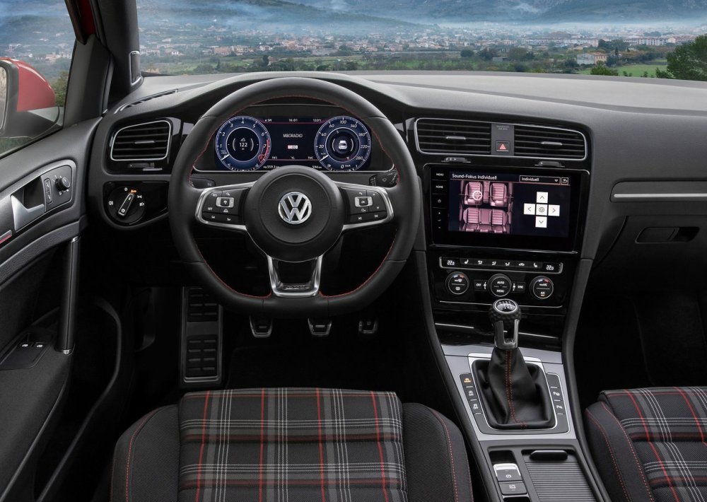 El interior transmite la esencia GTI combinada con un habitáculo tecnológico. Encontramos una pareja de asientos deportivos terminados con la mítica tapicería tartán de Volkswagen, el Innovation Cockpit que combina un cuadro de instrumentos digital de 10,25 pulgadas y una pantalla táctil central de 10 pulgadas para el sistema de infoentretenimiento, superficies minimalistas, ausencia de botones y un volante multifunción de tres radios y superficies táctiles.
